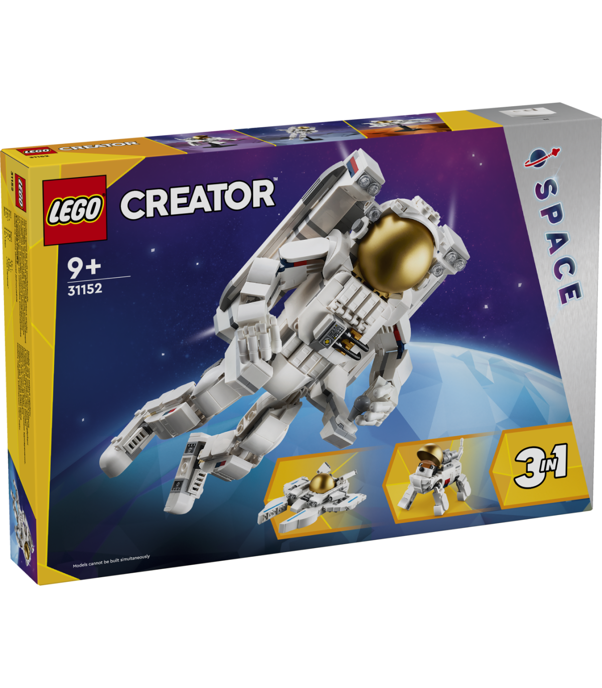 • 3 kosmosemänguasja ühes karbis – üle 9-aastased poisid ja tüdrukud saavad selle LEGO® Creator kosmoseastronaudi komplekti klotse kasutades ehitada ja ümber ehitada kolm eri mudelit