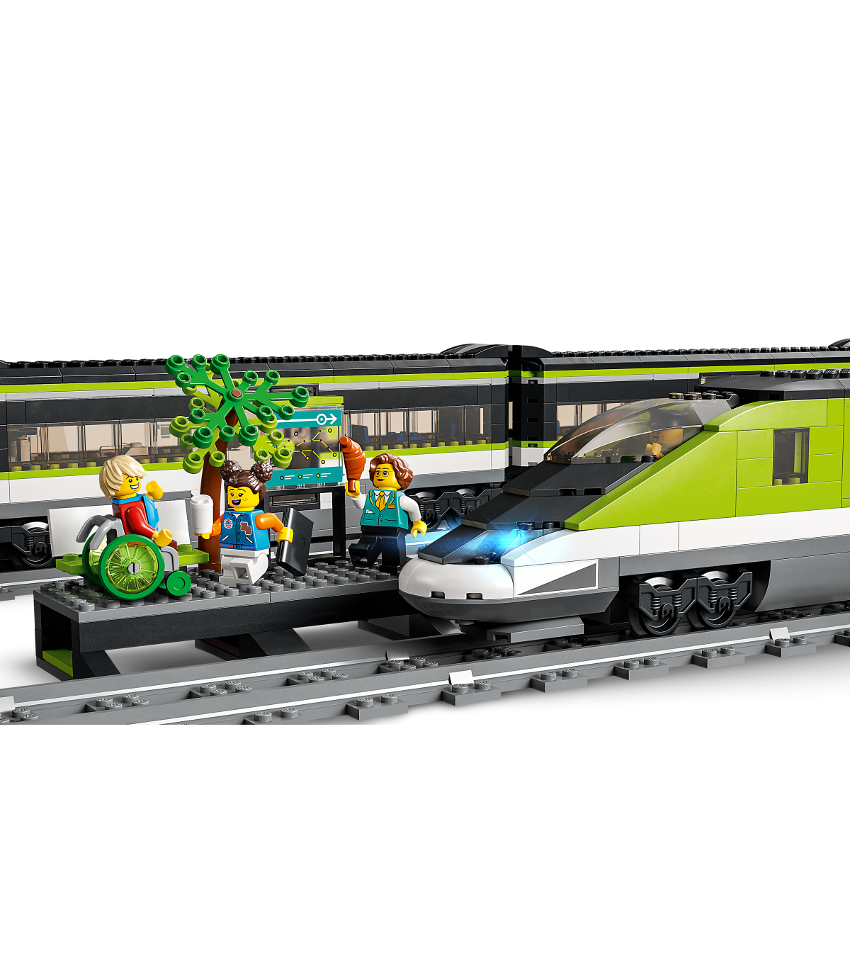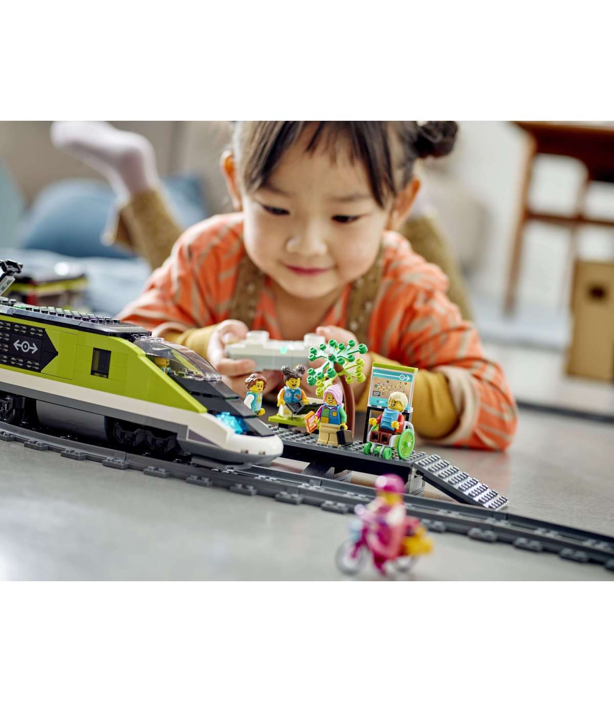 • Komplektis on LEGO® minifiguuritarvikud – selles kiirreisirongi komplektis on minifiguuri sülearvuti, telefon, jalgratas, ratastool, portfell, seljakott ja viinerisai