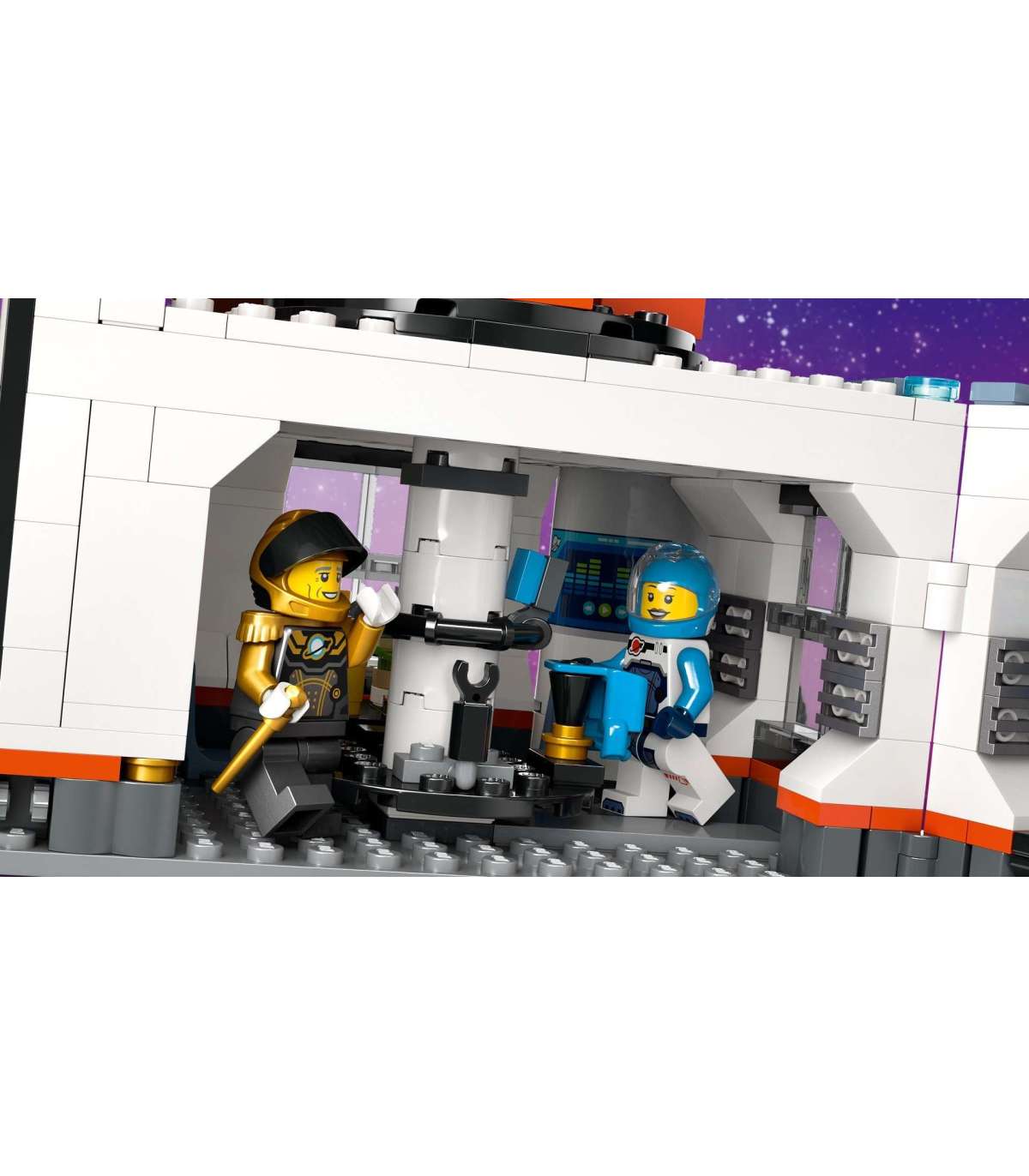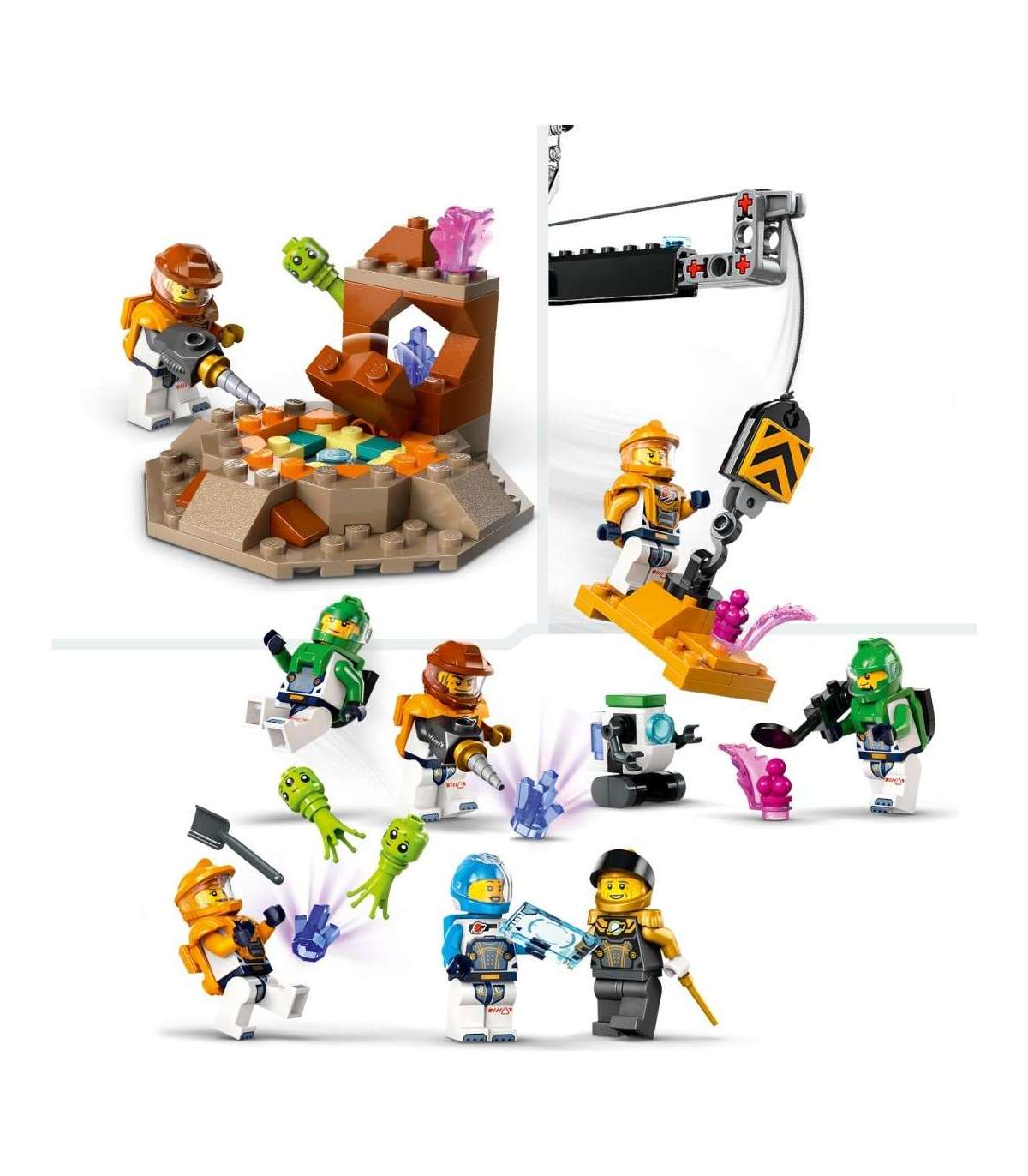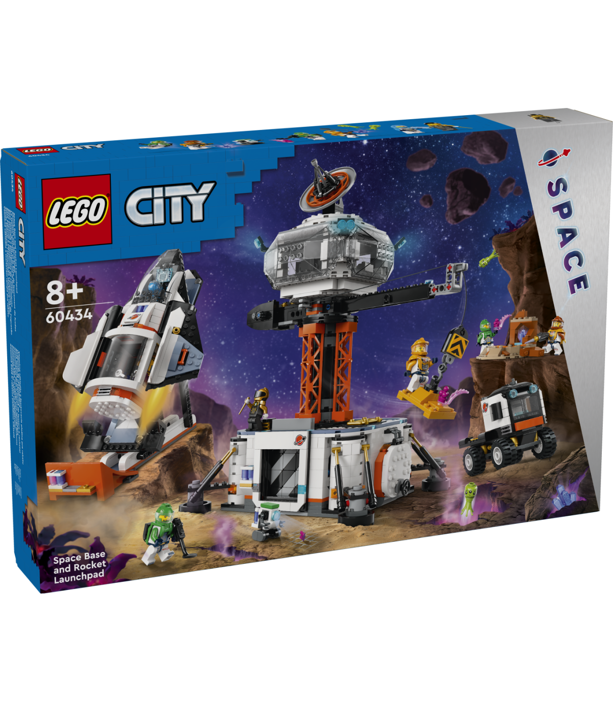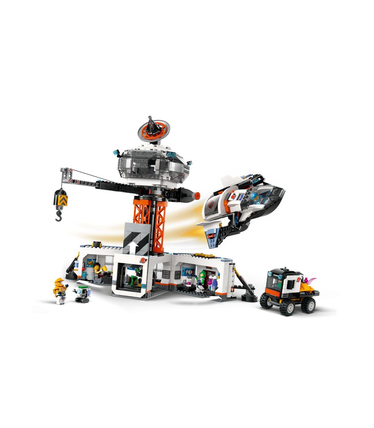 • Mis on selles LEGO® City kosmosekomplektis? – kõik, mida lapsed vajavad kosmosebaasi ehitamiseks, koos 360° tornkraana, kosmoselaeva, stardiplatvormi, veoauto, planeedi dekoratsiooni, kuue minifiguuri, roboti ja kahe tulnuka figuuriga