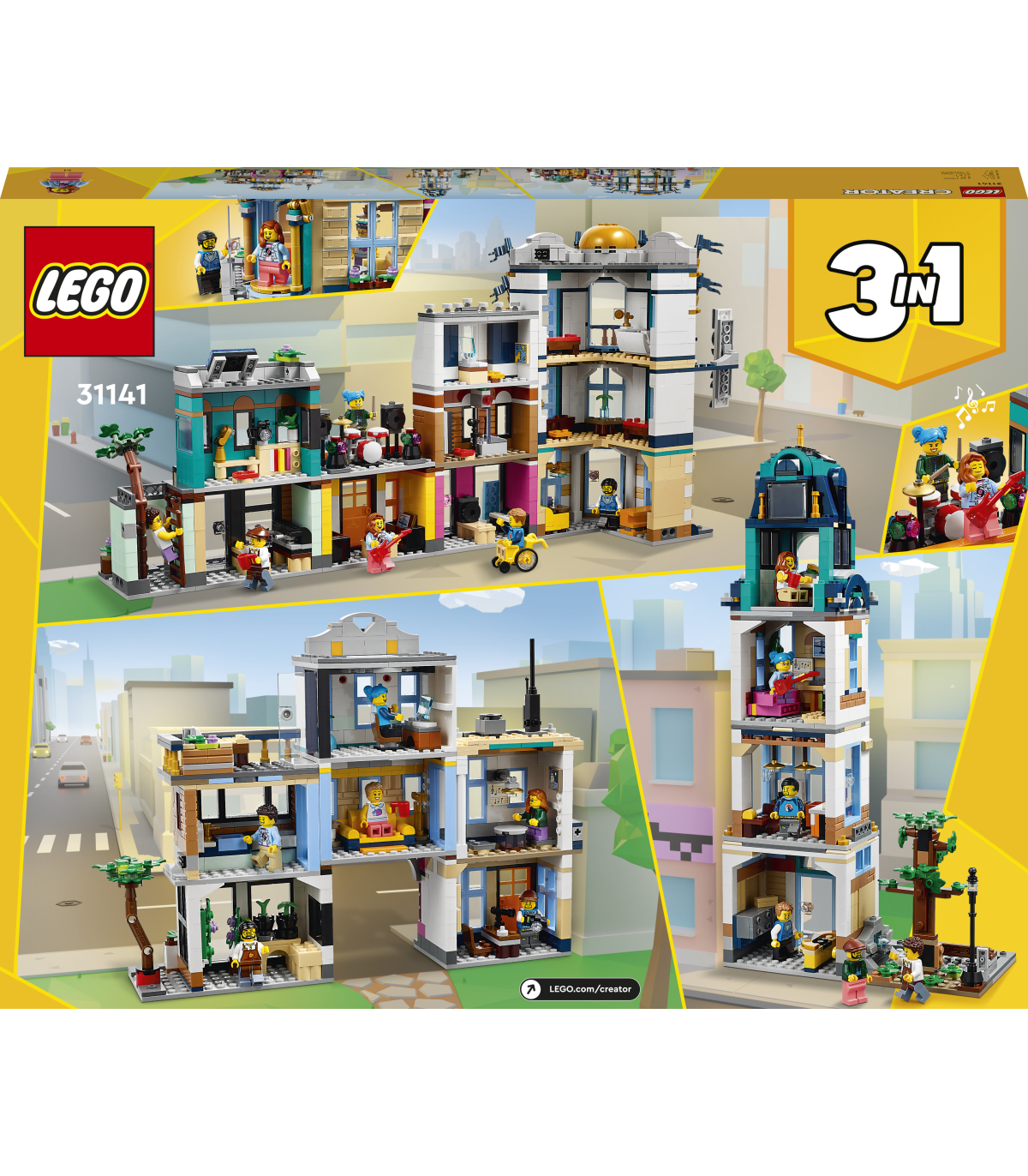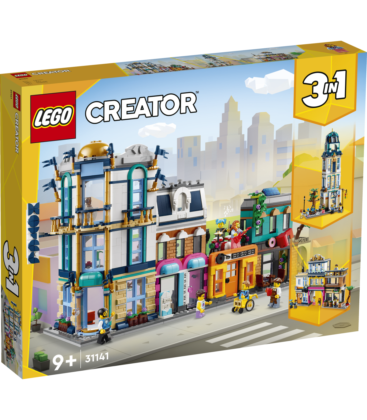 • Kolm-ühes mänguasi – lapsed saavad mängida põnevaid linnaseiklusi selle LEGO® Creatori kolm-ühes peatänava (31141) mängukomplektiga, mis sisaldab kolme mudelit ühes: linnatänav, art deco stiilis hoone ja turutänav.