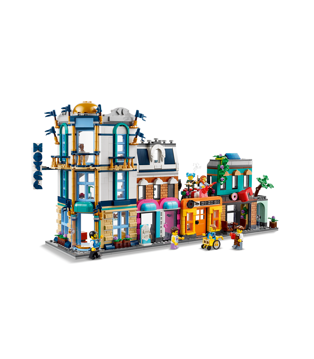 • Lõputud mänguvõimalused – LEGO® fännid saavad ehitada ja ümber ehitada kolm erinevat linnapilti: tänav hotelli, muusikapoe, plaadipoe ja kohvikuga; neljakorruseline art deco stiilis korterelamu või kaarkäiguga turutänav.