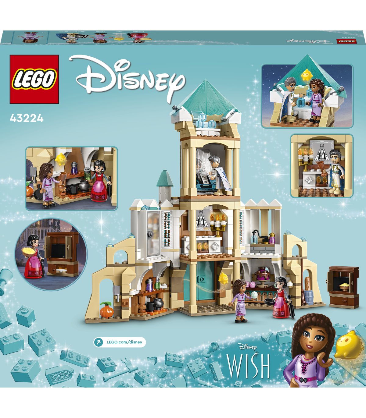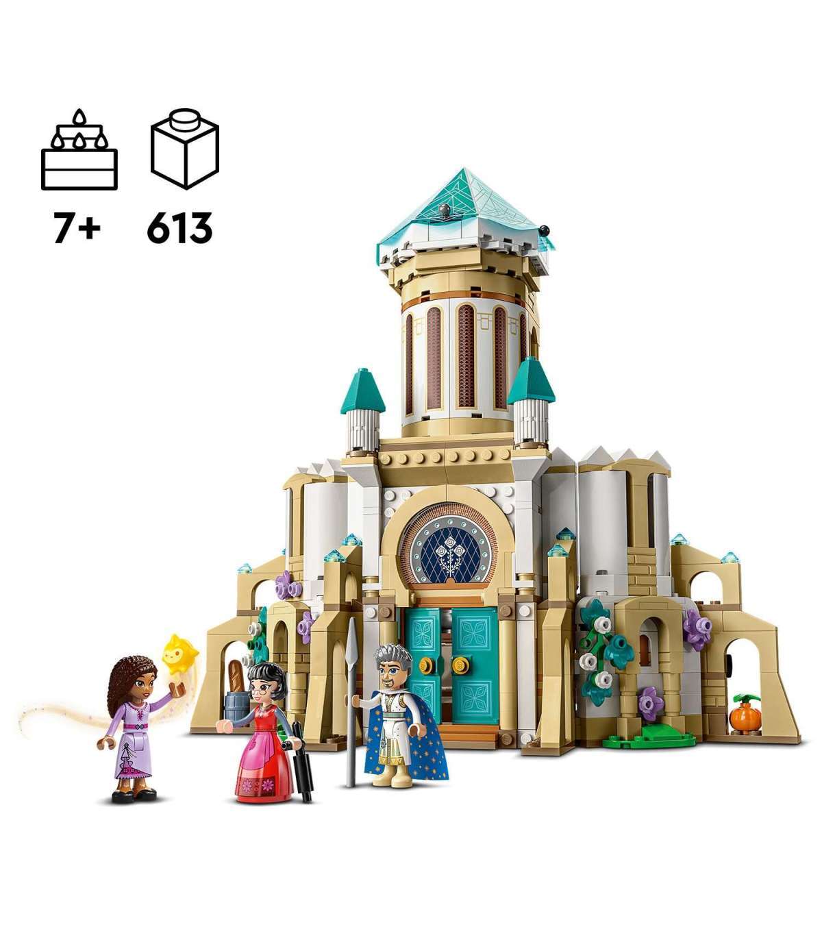 • Neli lõbusat tegelast – sisaldab Asha, Dahlia ja Kuningas Magnifico LEGO® ǀ Disney mininukufiguuri, lisaks Stari LEGO ǀ Disney figuuri peagi ilmuvast Disney filmist Wish, et inspireerida rollimänguseiklusi