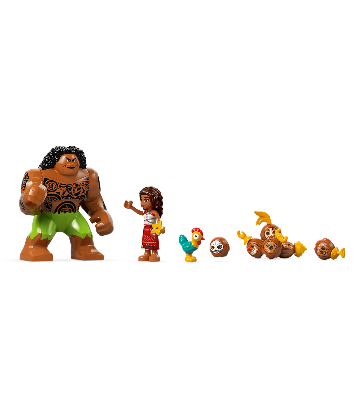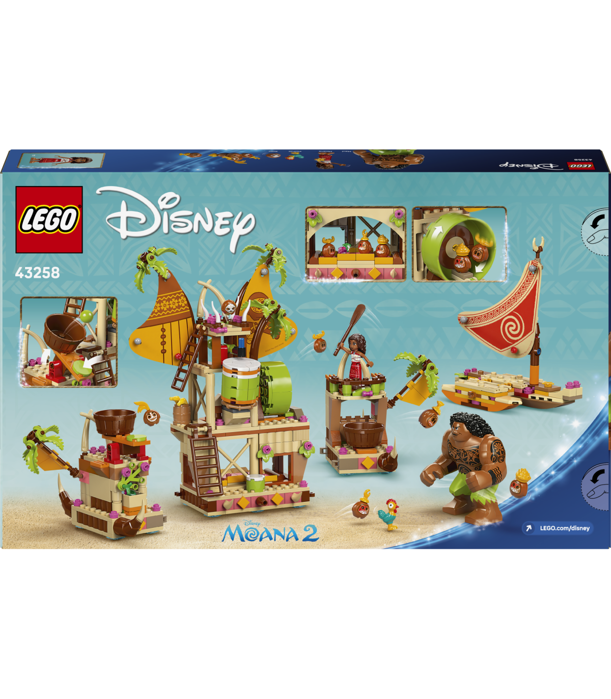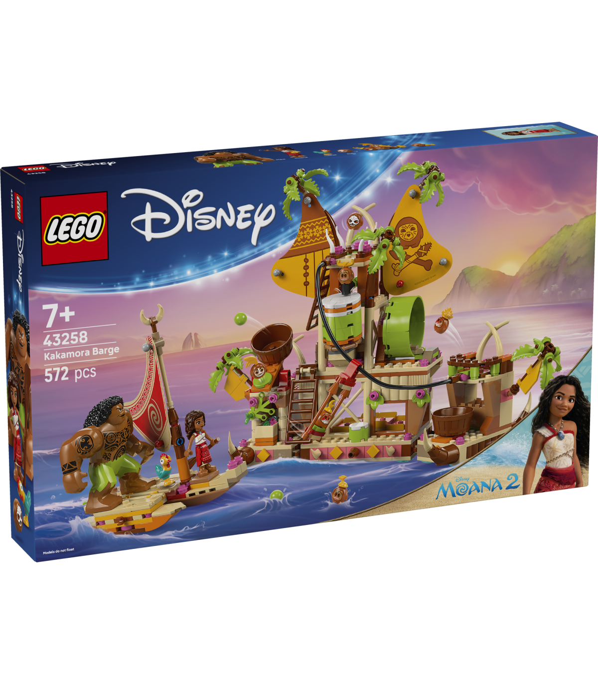 • Vaiana paadiehituskomplekt – komplektis on 3 sektsiooni ja ahviraudteega praam, väike kahe tasemega kanuu koos panipaigaga, kana Heihei, Vaiana, Maui, Kotu ja veel 5 LEGO® ǀ Disney tegelast