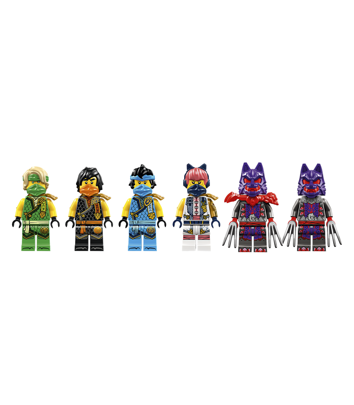• Kuus NINJAGO® minifiguuri – ninjamängukomplektiga on kaasas ninja Sora, Lloyd, Nya ja Cole ning Hundimaskis sõdalane ja Hundimaskis kindral