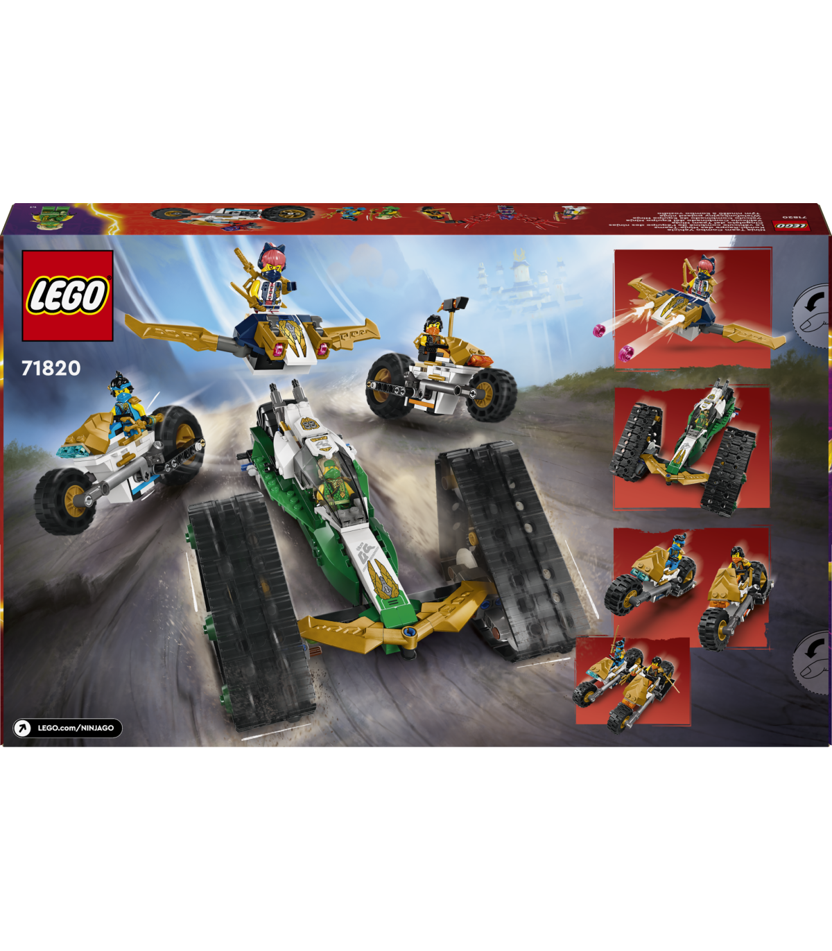 • Suuremad ninjaseiklused – otsi rohkem NINJAGO® mänguasju (komplekte müüakse eraldi), et mängida ninjameeskonna kombosõidukiga seiklusi