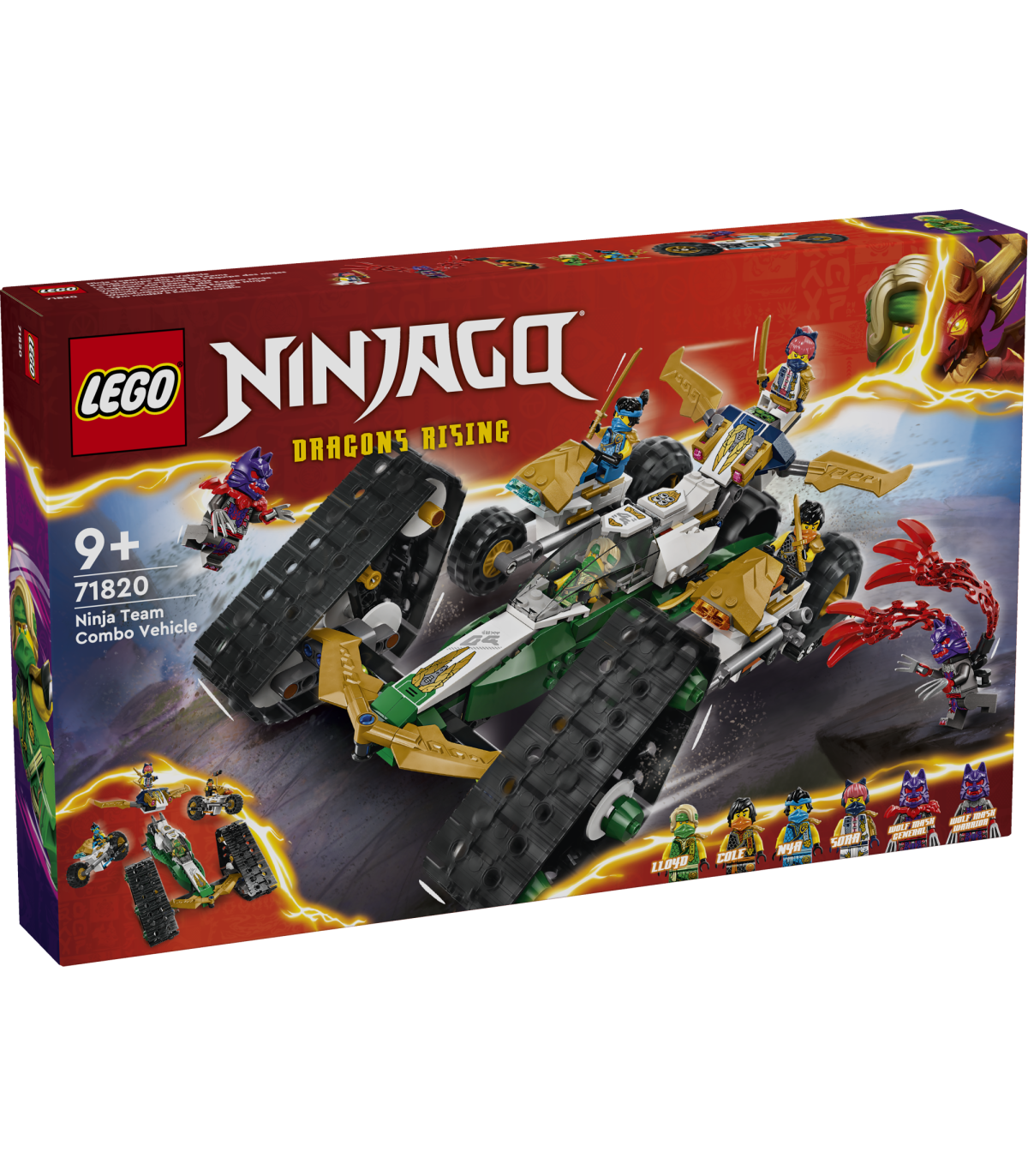 • Neli-ühes sõidukimänguasi lastele – 9-aastased ja vanemad poisid ja tüdrukud saavad mängida telesarja NINJAGO® Dragons Rising 2. hooaja lahinguid ninjameeskonna kombosõiduki seiklusmänguasjaga