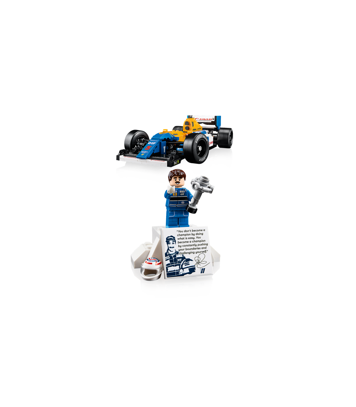 • Lauakaunistus koju ja kontorisse – sisaldab Williams Racing FW14B esitlusalust trükitud andmetega sõiduki kohta ning Nigel Manselliminifiguuriga poodiumit foto ja ikoonilise tsitaadiga
