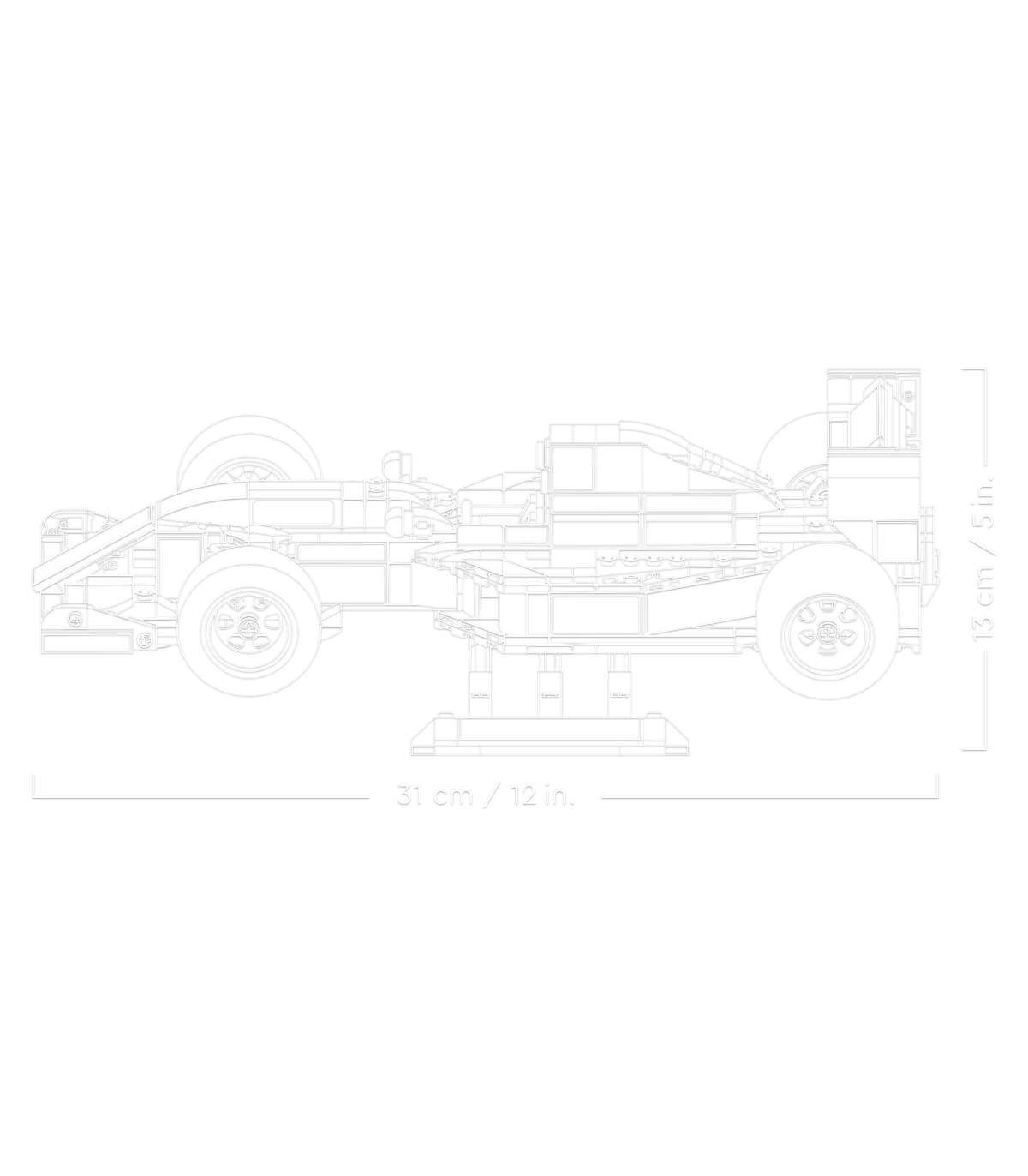 • Mõõtmed – Williams Racing FW14B võidusõiduauto selles 799-osalises LEGO® komplektis on 7 cm kõrge, 31 cm pikk ja 15 cm lai