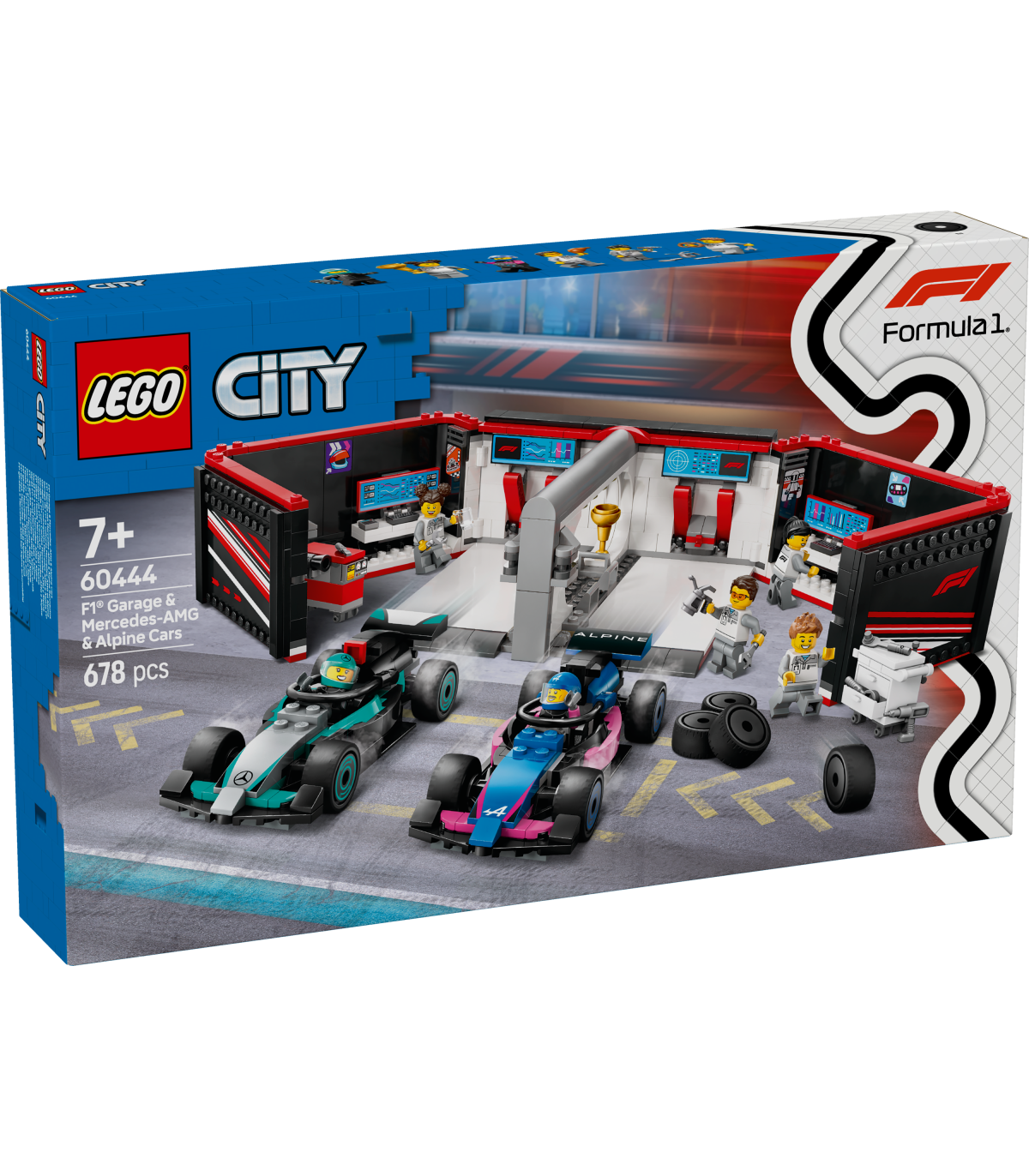 LEGO City F1 garaaž, Mercedes-AMG ja Alpine autod