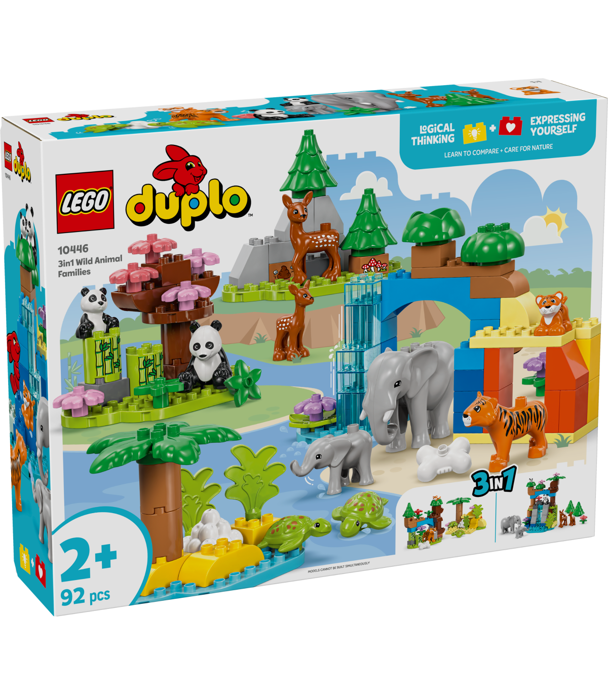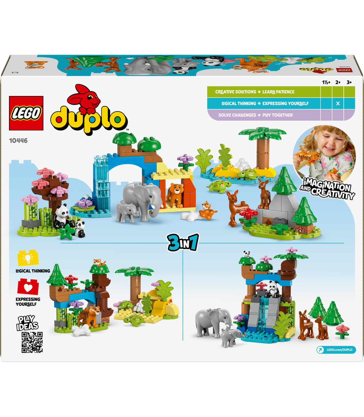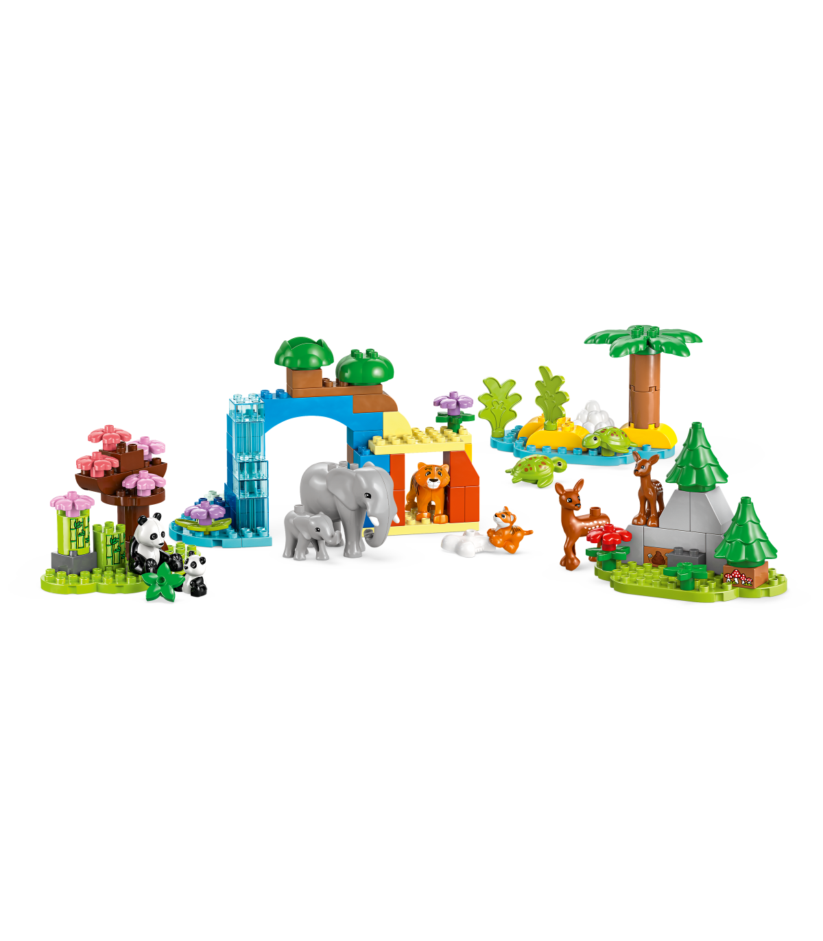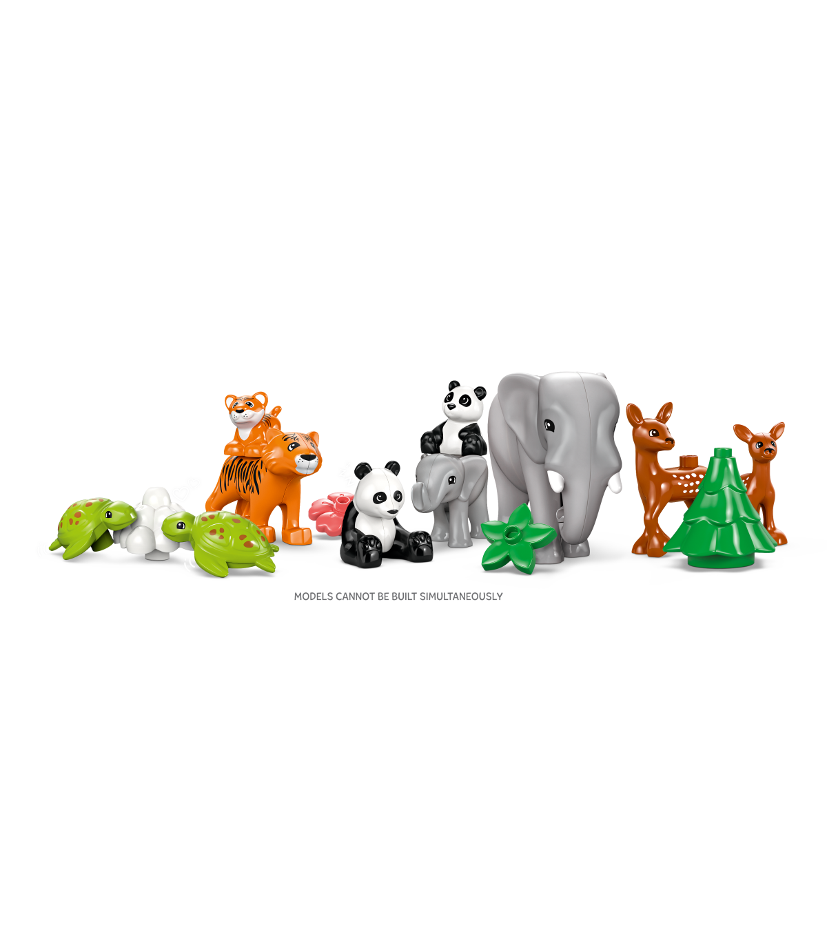 • Kujutlusvõimet arendav mänguasi 10 LEGO® DUPLO® metsloomaga loominguliste lugude jutustamiseks – komplektis on tiigri-, elevandi-, hirve- ja pandafiguurid, millest igaühel on beebi, ning 2 kilpkonnafiguuri