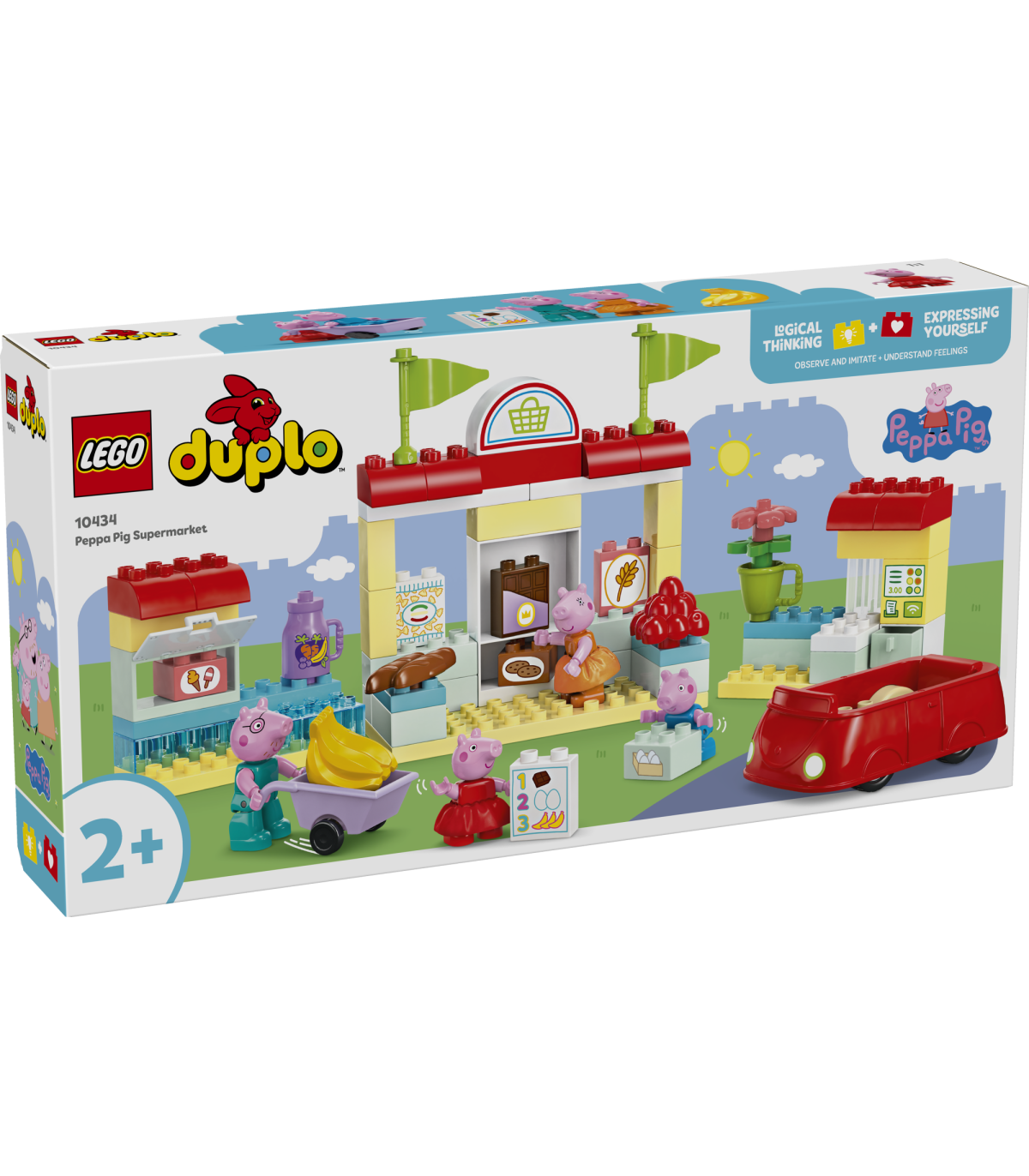 • Ostlemise rollimäng alates 2-aastastele tüdrukutele ja poistele – aita eelkooliealistel lastel mänguasjaga LEGO® DUPLO® Põrsas Peppa supermarket luua stseene oma lemmiktelesarjast