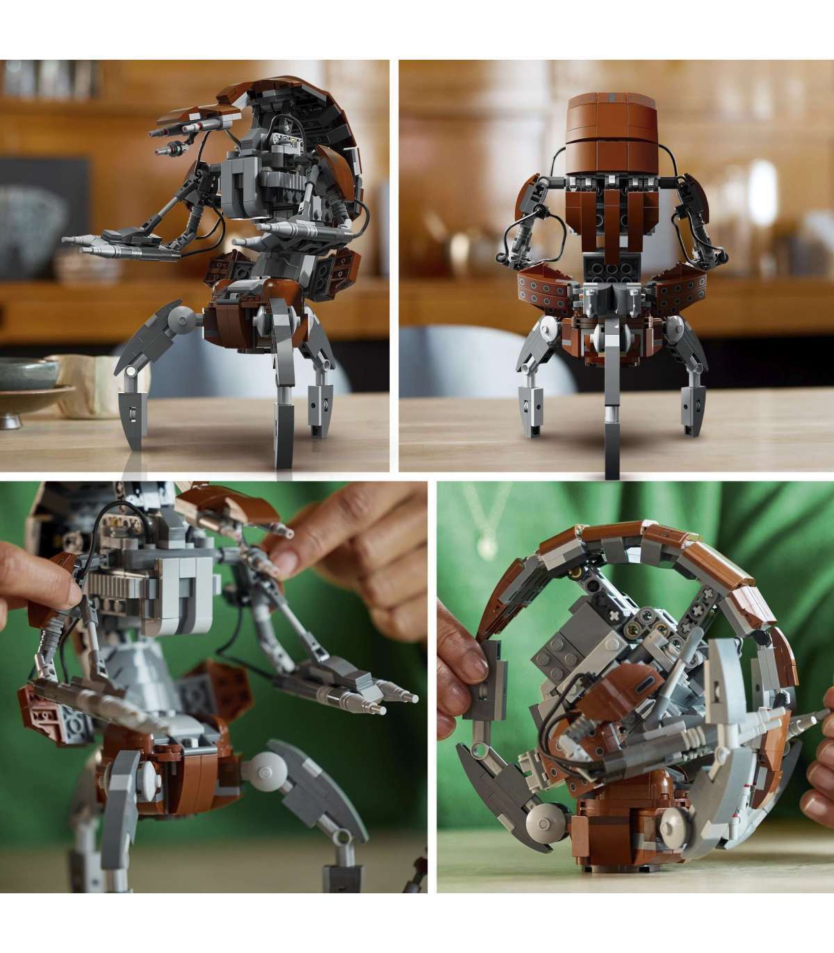 • Mänguliste detailidega LEGO® Star Wars™ fantaasiaseikluse väljapanekukomplekt – liiguta Droideka käsi realistliku laskeliigutusega edasi-tagasi ja võta ära jalad, et muuta see pallikujuliseks