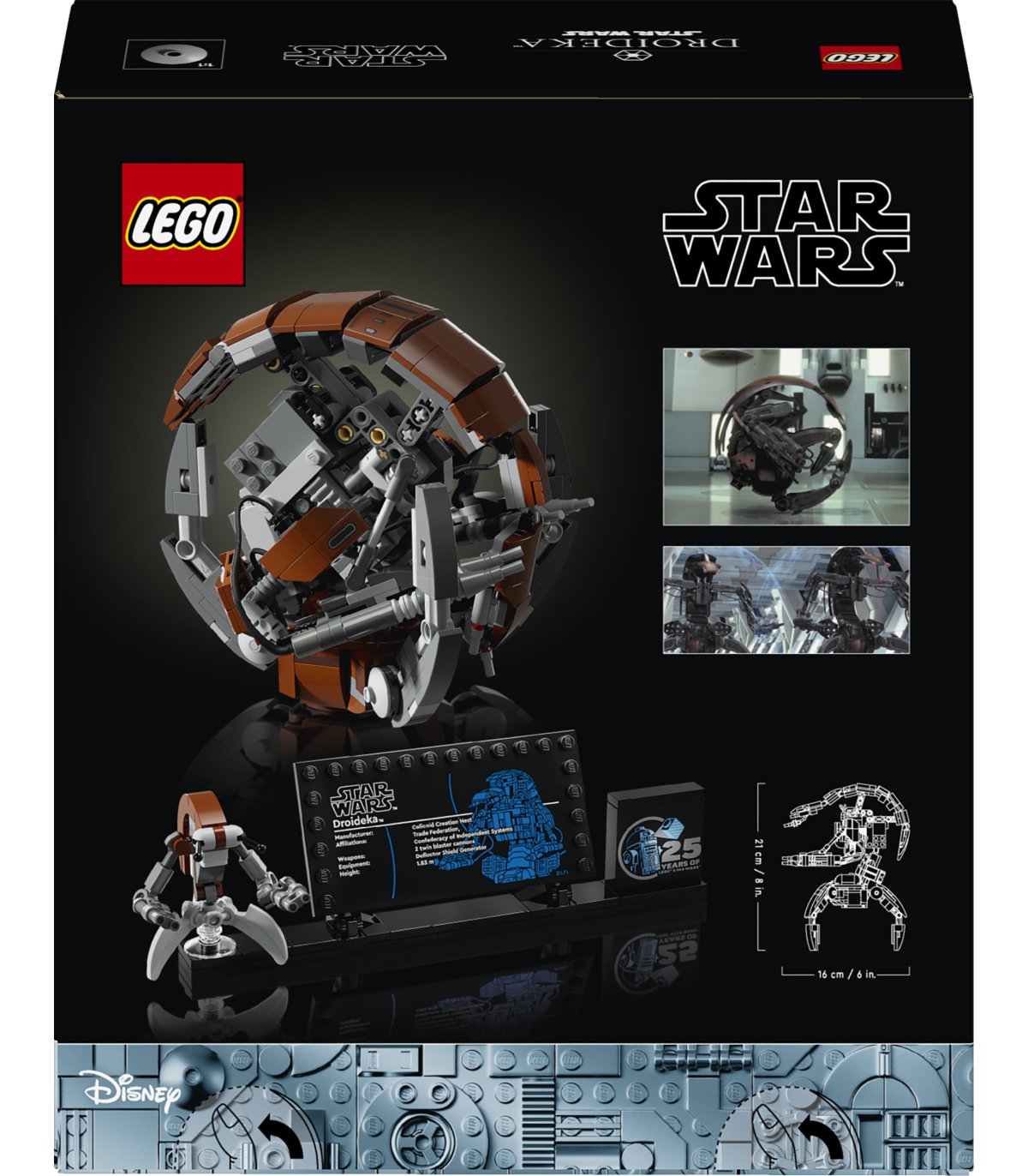 • 25. aastapäeva väljapnek – selles ainulaadses komplektis on alus, kus on ruumi Droideka väikese LEGO droidifiguuri jaoks, Droideka infotahvel ja LEGO® Star Wars™ 25. aastapäeva klots