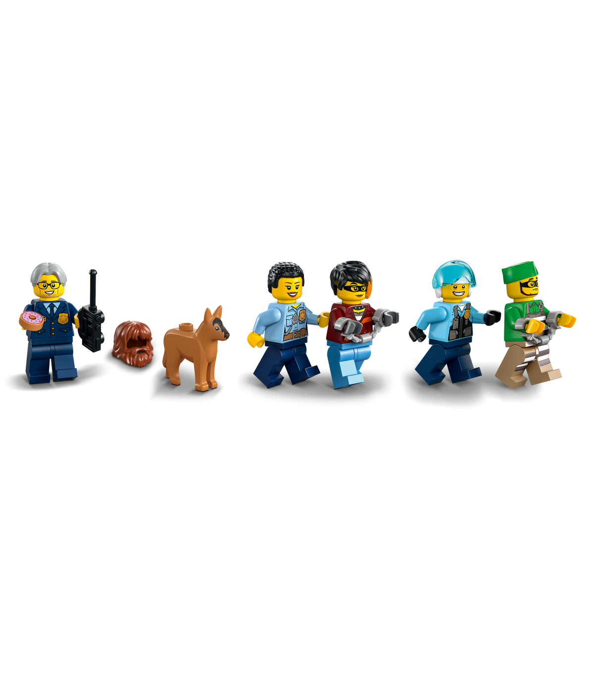 Sisaldab LEGO® minifiguuritarvikuid – selles politseiteemalises mängukomplektis on palju vahvaid tarvikuid loovmänguks, sh raadiosaatja, kaamera, kaka- ja sõõrikuelemendid
