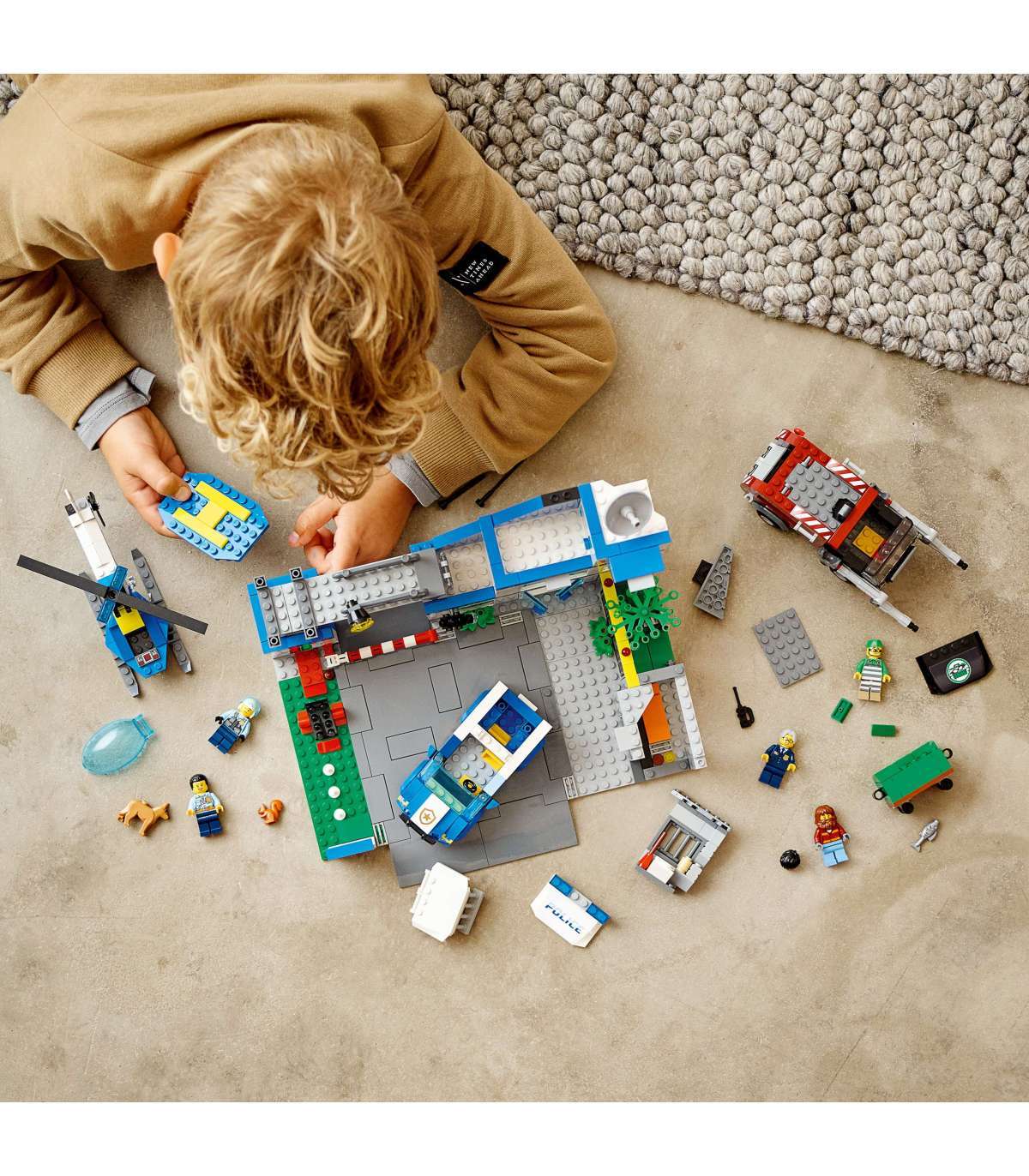 Mis on karbis? – Kõik, mida lapsed vajavad selleks, et ehitada kolmekorruseline politseijaoskond, patrullsõiduk, helikopter ja prügiveoauto, lisaks koerafiguur ja viis minifiguuri, sh kolm LEGO® City telesarja tegelast