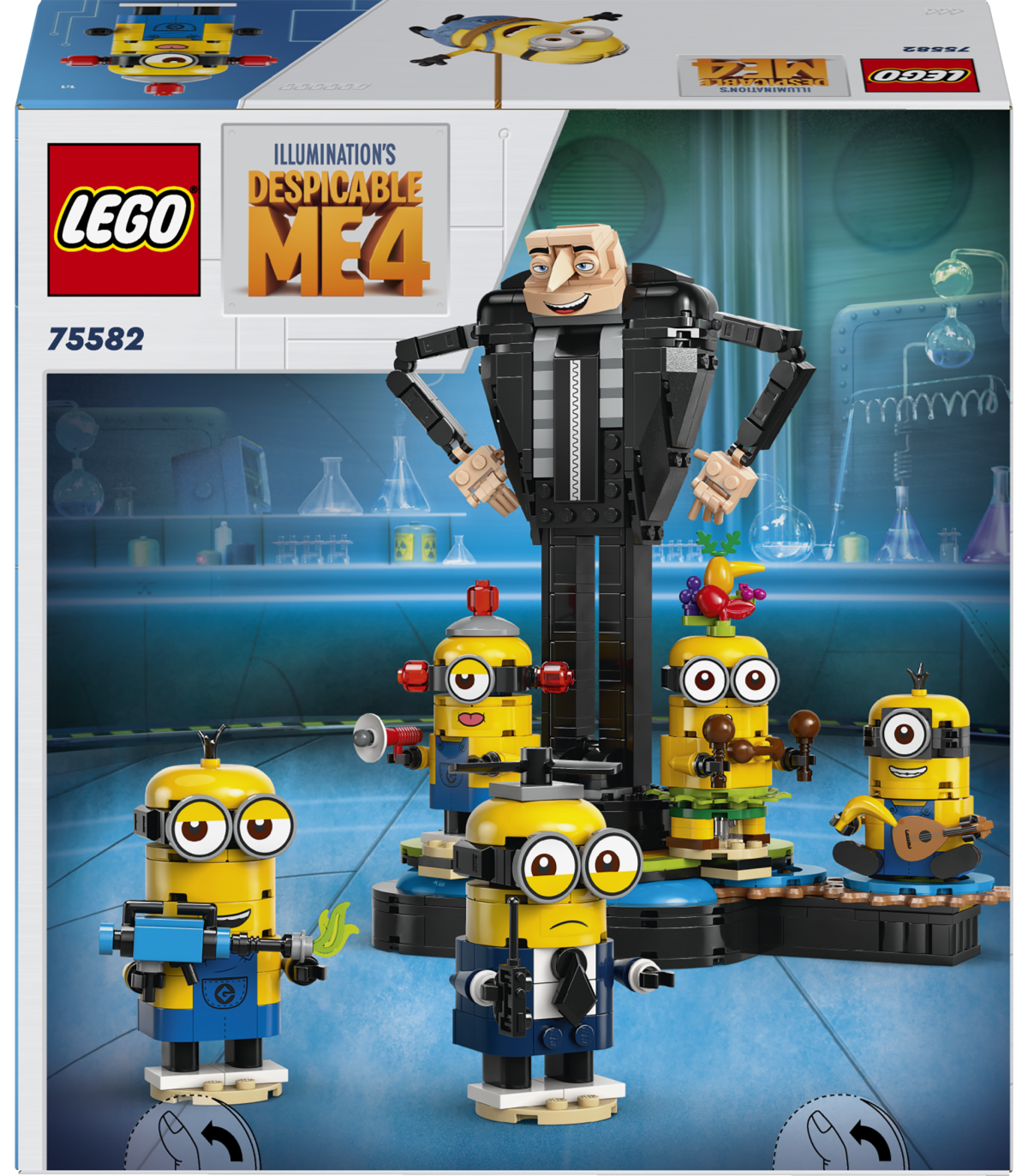 • Gru figuur ja tantsivad Käsilsed – LEGO® Despicable Me 4 Klotsidest kokkupandavad Gru ja Käsilased on kokkupandav mängu- ja esitlusmudel alates 9-aastastele poistele ja tüdrukutele, kes on Käsilaste filmide fännid