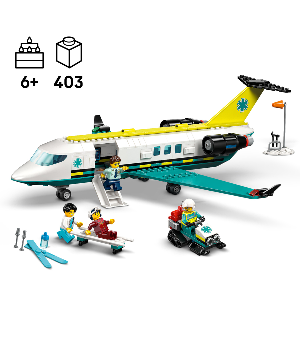 • Kiirabilennuki mudel – selle funktsiooniderohke LEGO® City kiirabilennuki komplektiga, mis on mõeldud alates 6-aastastele lastele, ootavad ees põnevad õhupäästemissioonid