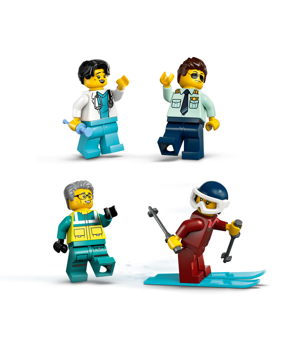 • Mis on karbis? – Komplektis on kõik, mida lapsed vajavad kiirabilennuki, lumesaani ja väikese lennujaamastseeni ehitamiseks, lisaks piloodi, arsti, parameediku ja suusataja minifiguurid