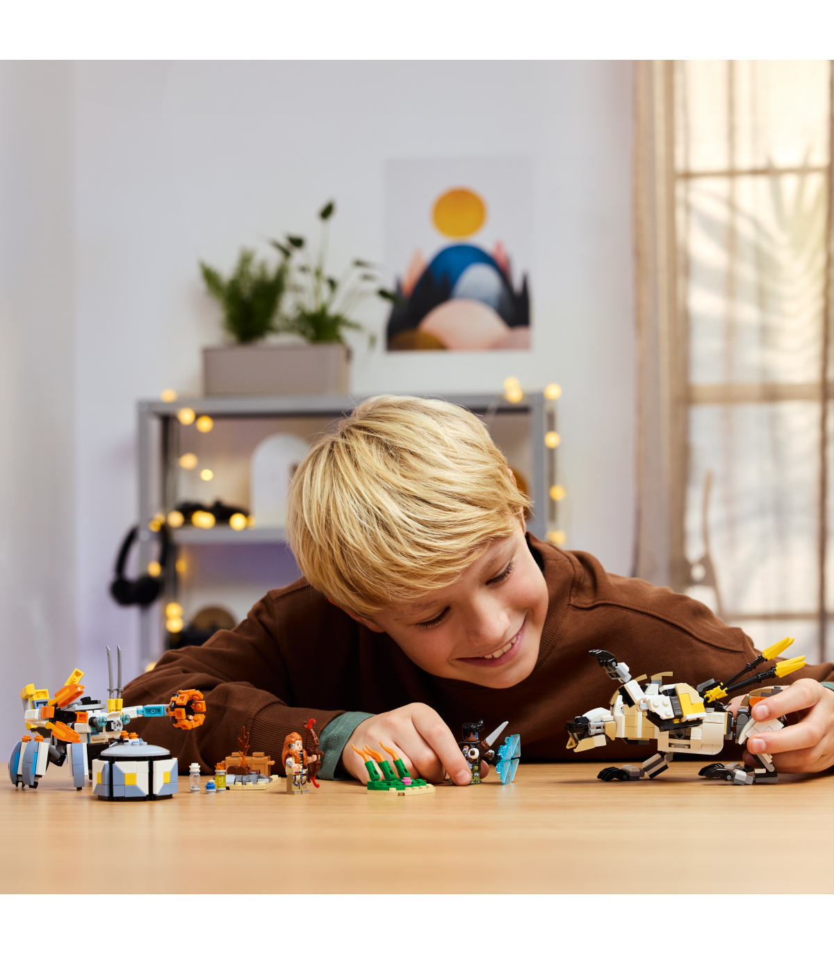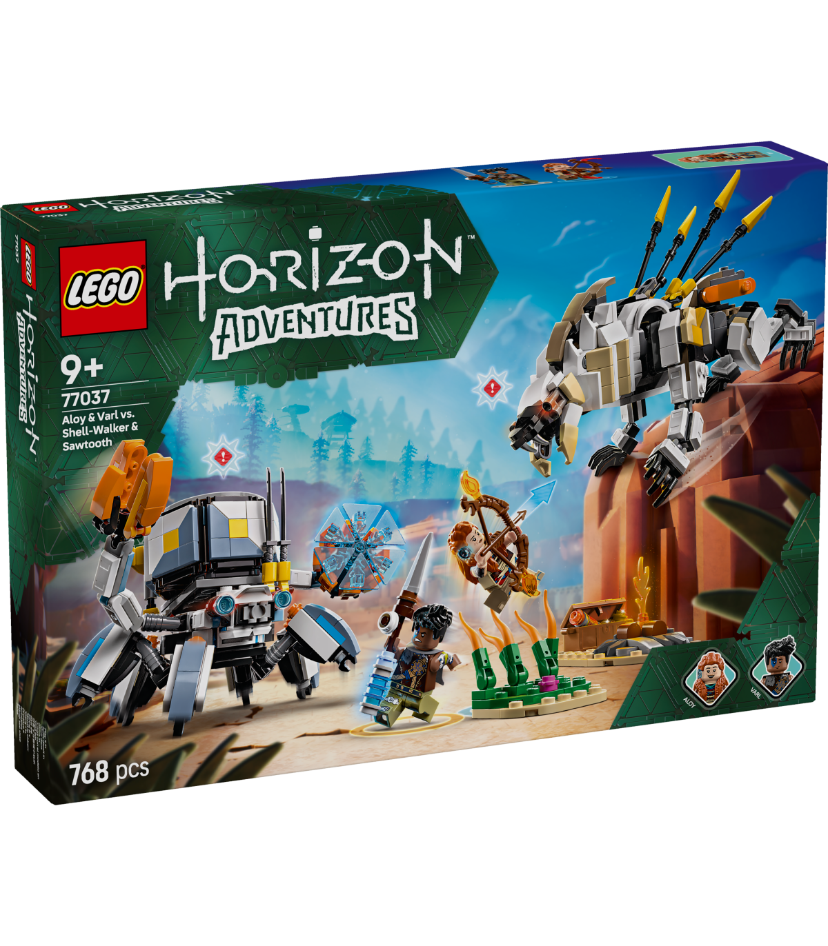 • Horizoni mängu LEGO® komplekt lastele – Aloy ja Varl vs. Shell-Walker ja Sawtooth pakub praktilist mängurõõmu vähemalt 9-aastastele poistele ja tüdrukutele, kelle kireks on videomäng LEGO® Horizon Adventures™