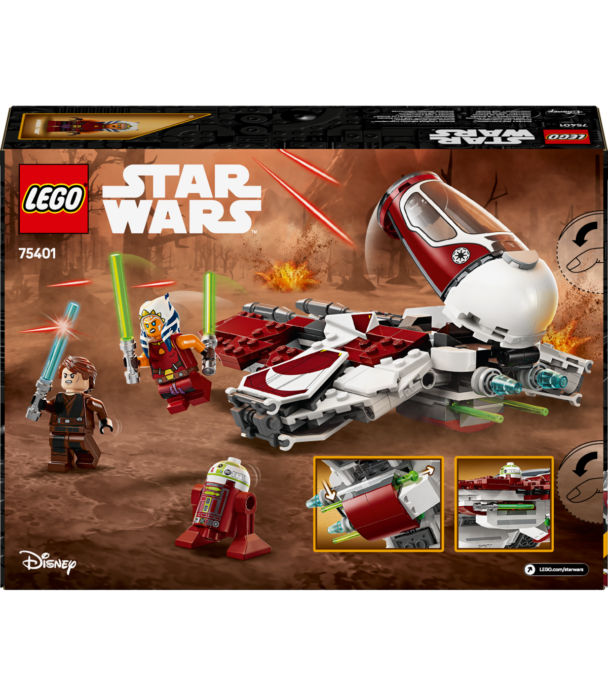 • Star Wars™ tähelaev – Jedi Interceptoril on Ahsoka Tano jaoks avatav kokpit, ruum R7-A7 jaoks, reguleeritavad tiivad, 2 vedrulaskeseadet ja hoiuruum Ahsoka kahele valgusmõõgale
