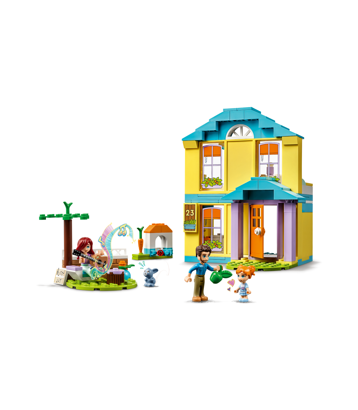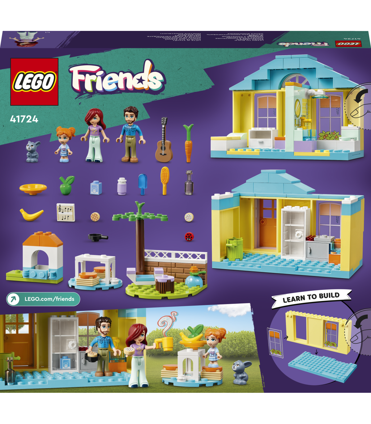 • Sõprusest pakatav maja – selles kahekorruselises LEGO® Friends majas on köök, magamistuba, vannituba, õues asuv söögiala, lisas hubane õuenurk, kus tagasihoidlikule Paisleyle meeldib puhata