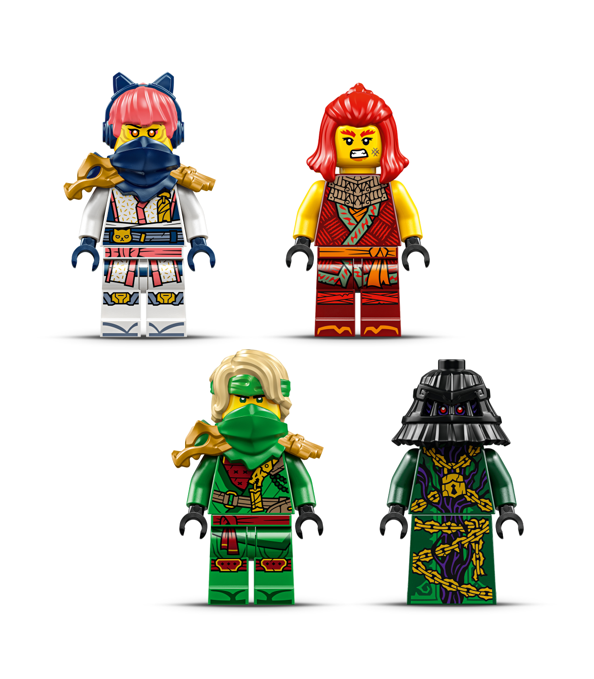 • 4 NINJAGO® minifiguuri – selle LEGO® ehituskomplektiga on kaasas ninjasõdalased Sora, Wyldfyre, Lloyd ja kurikuulus Zarkt koos ninjarelvatarvikutega, et lapsed saaksid mängida hea ja kurja lahinguid