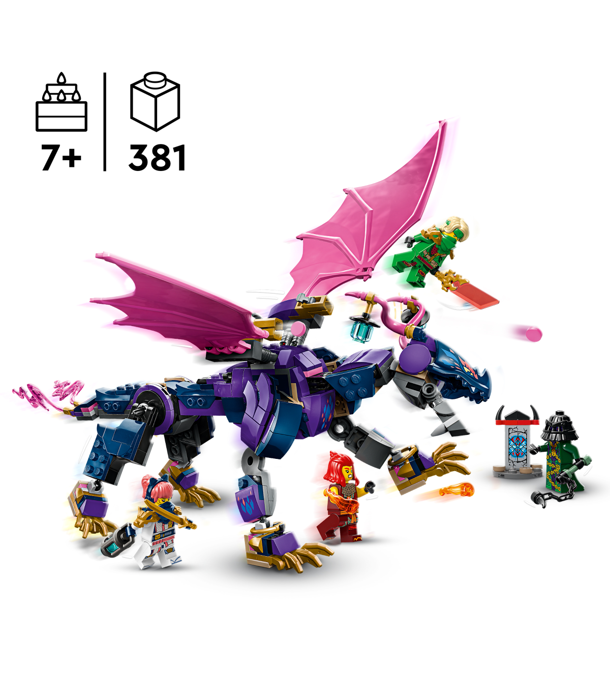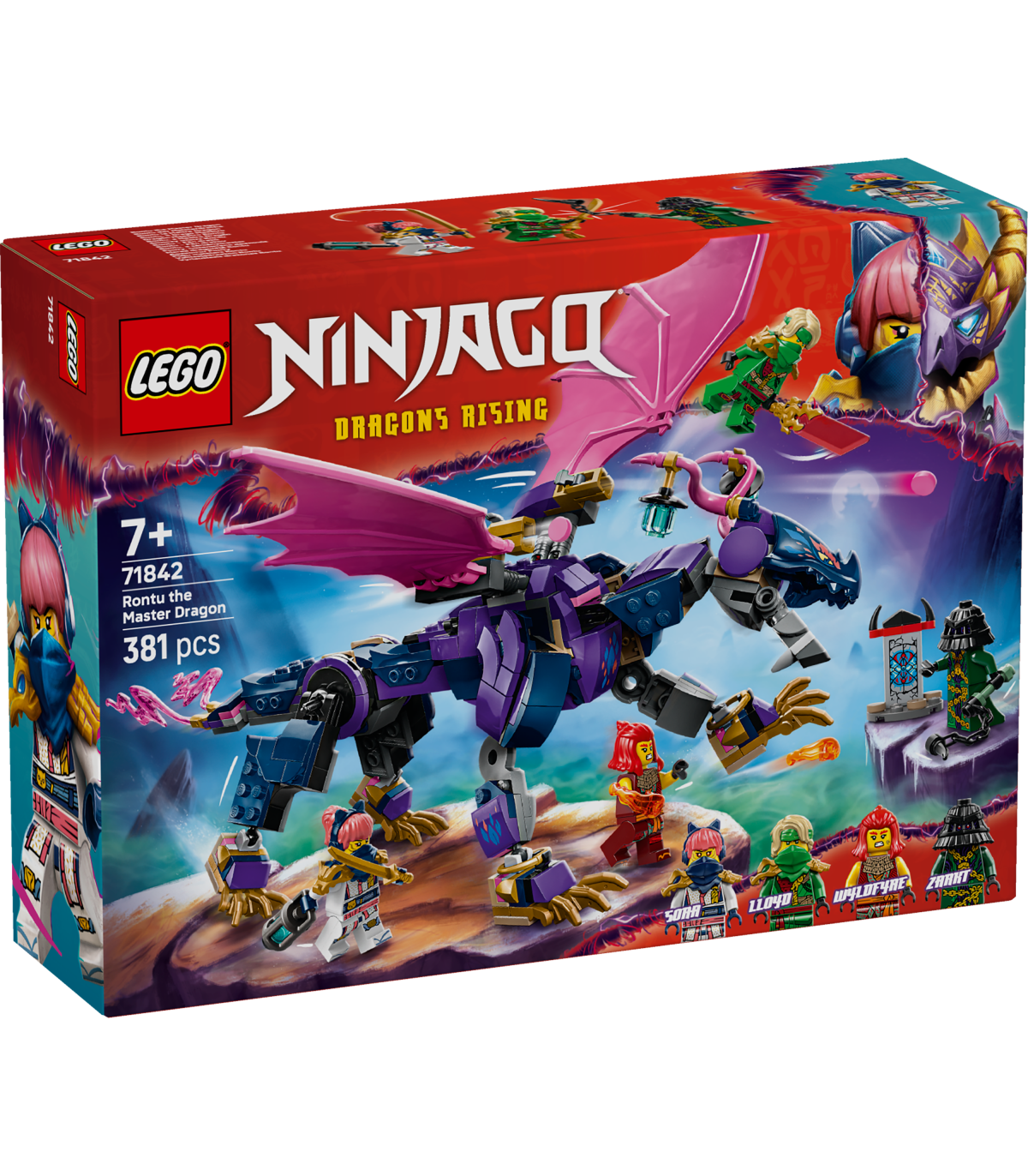 • Mõõdud – selles 381-osalises LEGO® NINJAGO® ehituskomplektis olev valitsejadraakon Rontu on 13 cm pikk