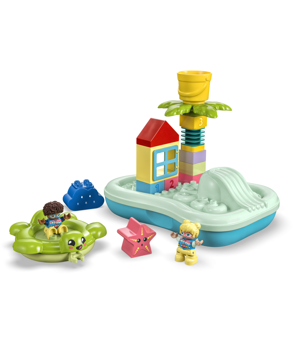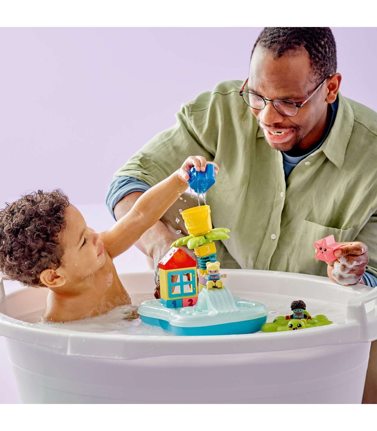 • Lõbus mänguasi, mida vannis kokku panna – selle vannimänguasjaga on kaasas ujuv saar ja kilpkonnaga rõngas, painduv palmipuu veeämbriga, kaheksajala veeliumägi, kaks lapse minifiguuri, meritäht ja vihmapilved.