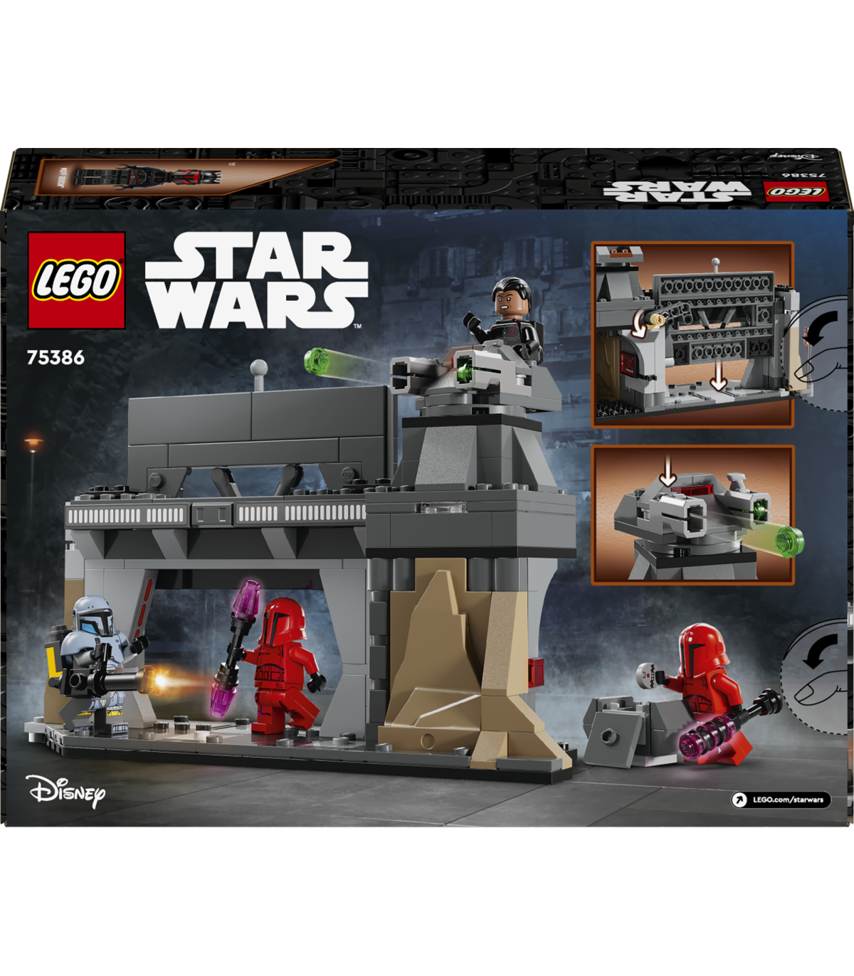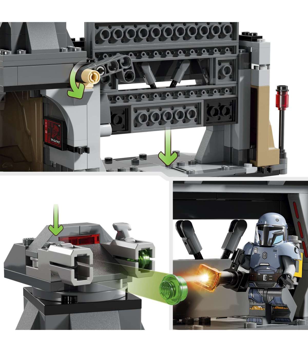 • Star Wars™-i ehitusmänguasi lastele – selle komplekti Mandalore’i baasil on tugevalt soomustatud uks, millel on sulguriga päästik ja juhtpaneelid, lisaks pöörlev nupse tulistav kahuritorn