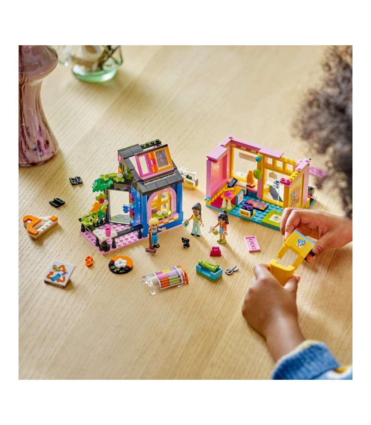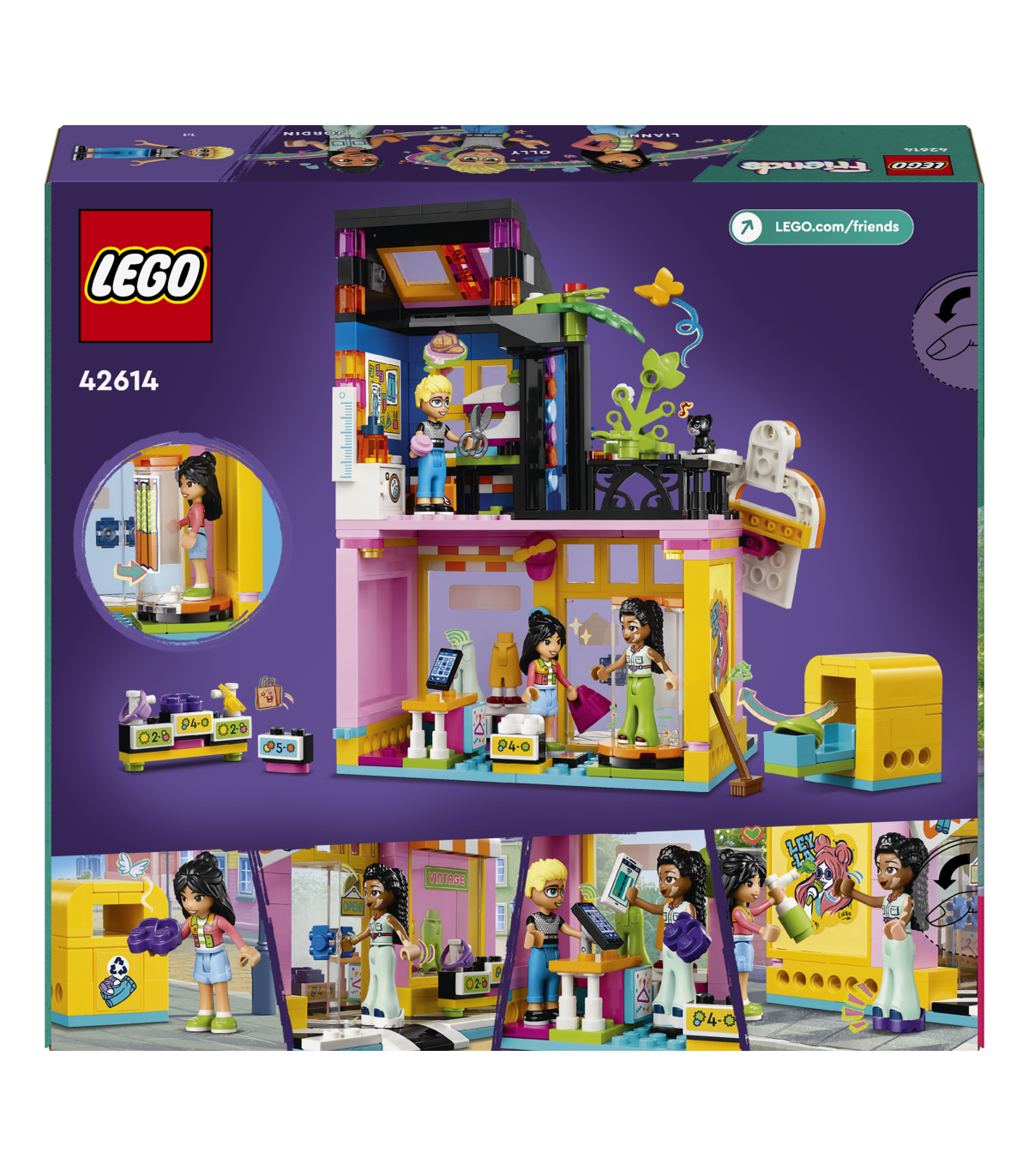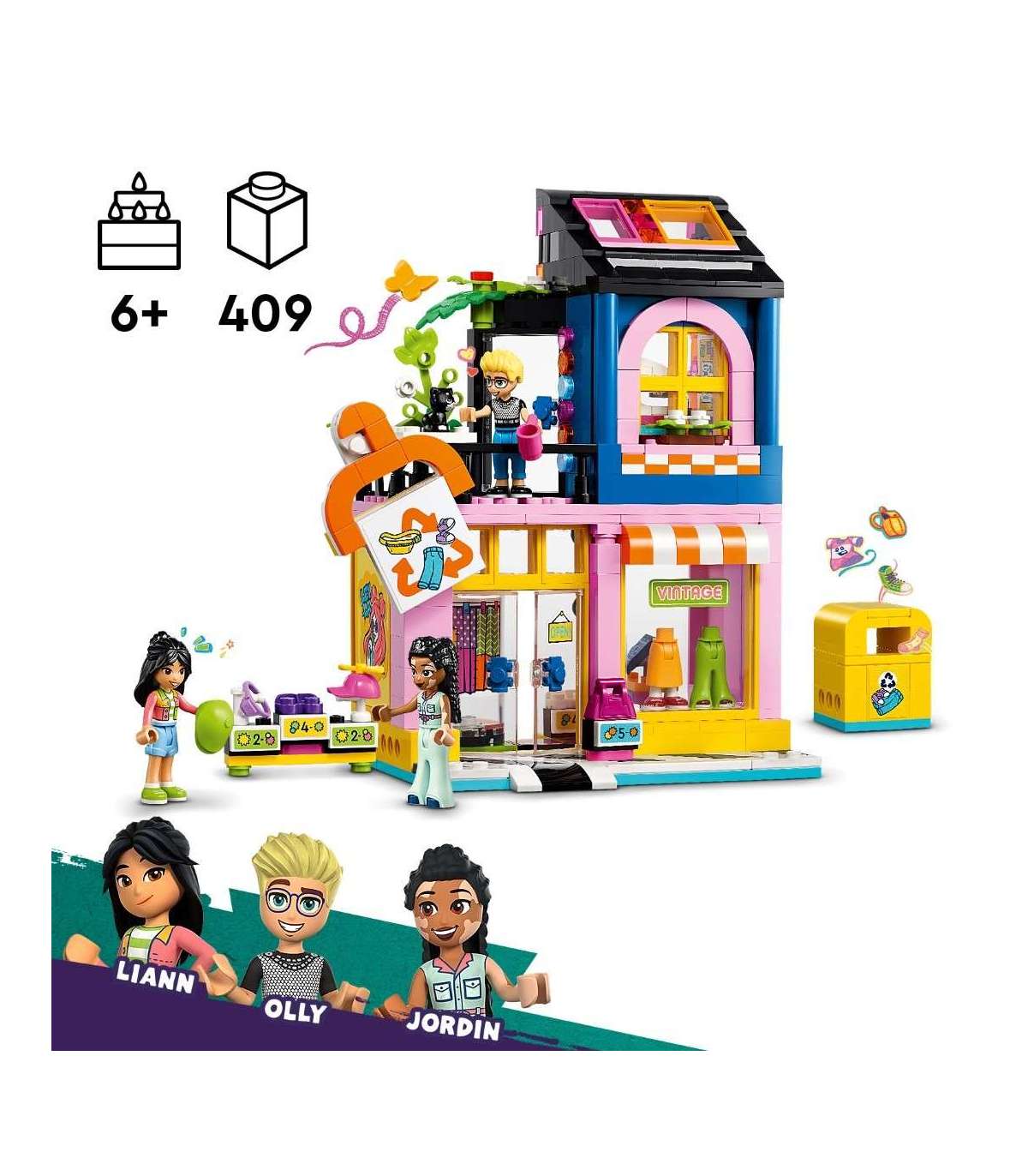 • LEGO® Friends vintage riiete poe komplekt – see sotsiaal-emotsionaalne mänguasi sisaldab kokkupandavat kauplust koos töötoaga, kolme mininukku, kassifiguuri ja palju moetarvikuid lastele vanuses alates 6. eluaastast