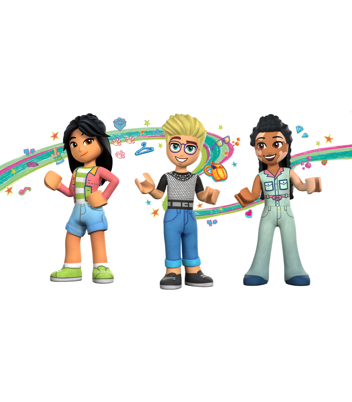 • Sotsiaal-emotsionaalne mänguasi kolme mininukuga – komplektis on kolm LEGO® Friends mininukku ning kassifiguur, nii et loominguline mäng saab alata kohe