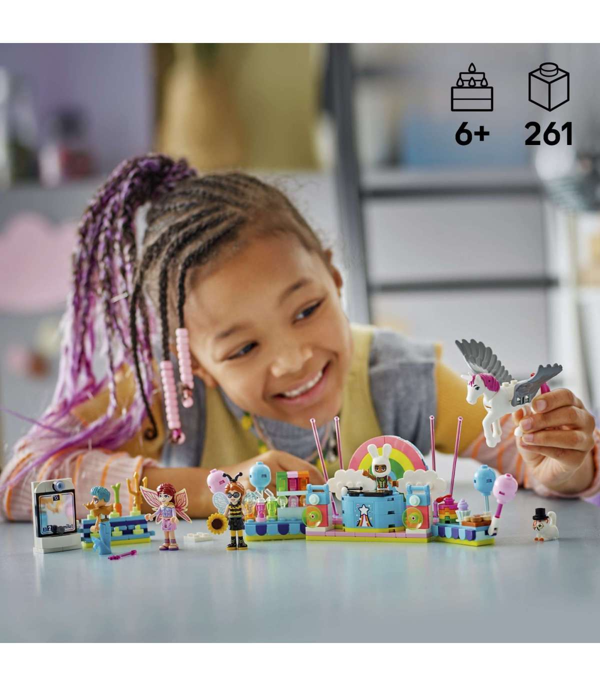 • Ehituskomplekt loovmängu innustamiseks – see LEGO® Friends komplekt Kostüümipidu ükssarviku ja haldjaga sisaldab lõbusat peostseeni koos DJ-boksiga, et rõõmustada 6-aastaseid ja vanemaid tüdrukuid ja poisse