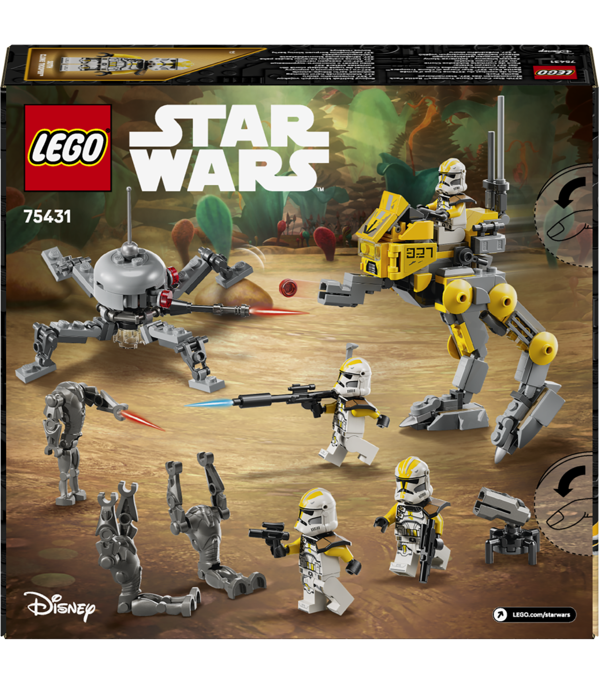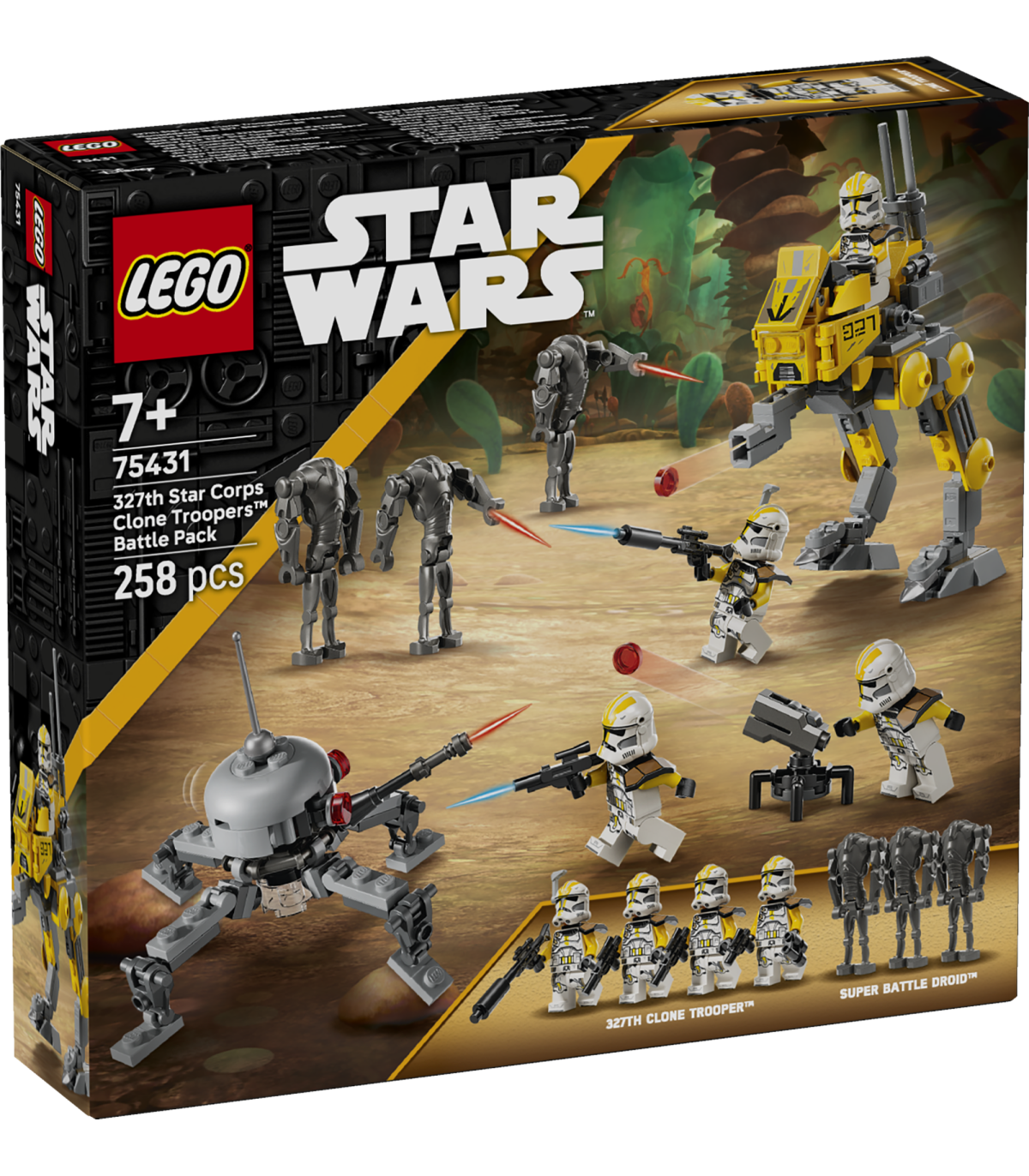 • LEGO® Star Warsi™ lahingukomplekt – lase lastel ehitada oma 327. tähekorpuse kloonsõdalastest koosnev rühm ja mängida Star Wars: Revenge of the Sith™-i lahinguid superlahingdroidide vastu