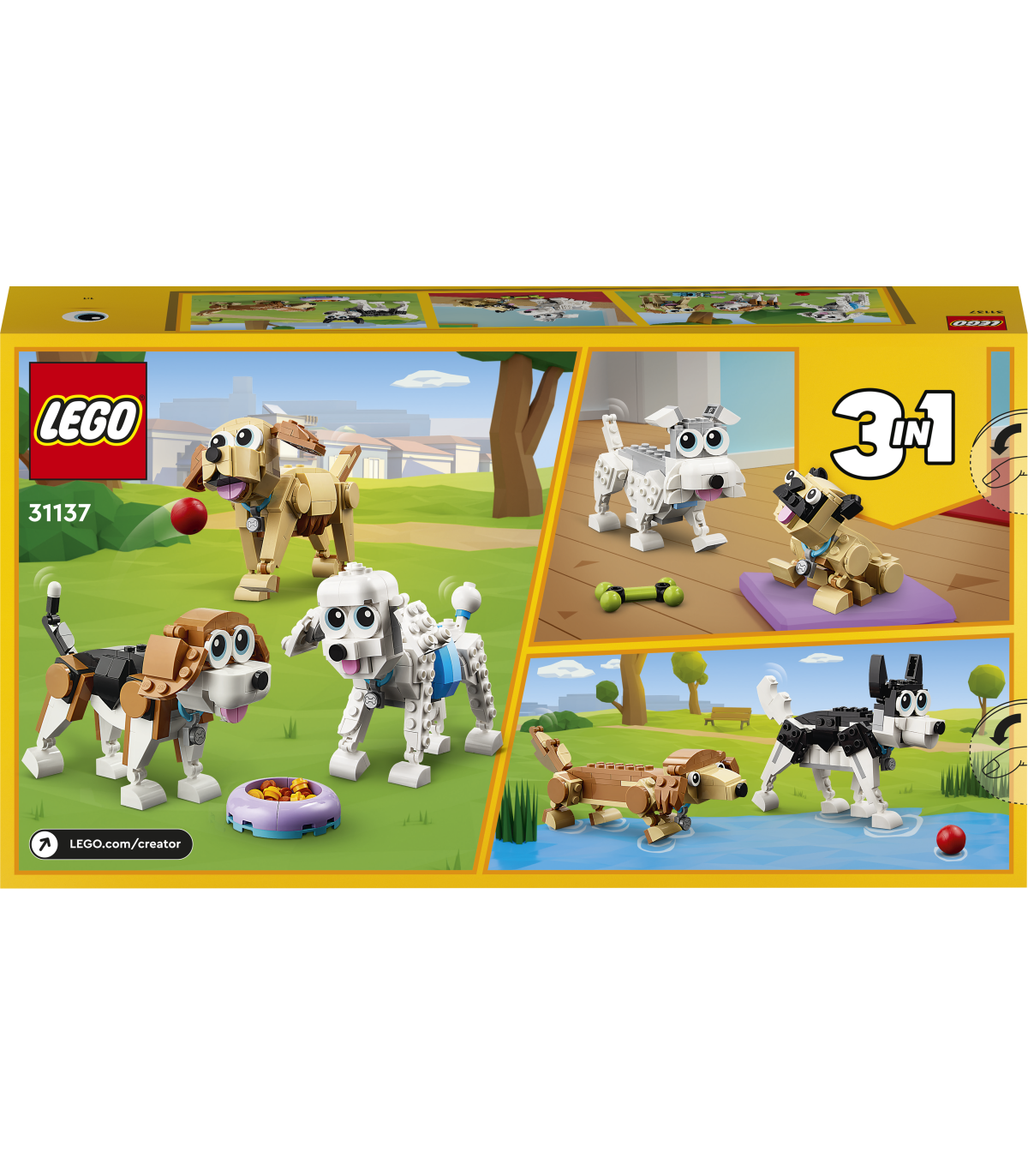 • Kolm-ühes ehituskomplekt – lapsed saavad selle fantastilise LEGO® Creator 3in1 armsate koerte (31137) mängukomplekti abil luua kolm erinevat koerte rühma