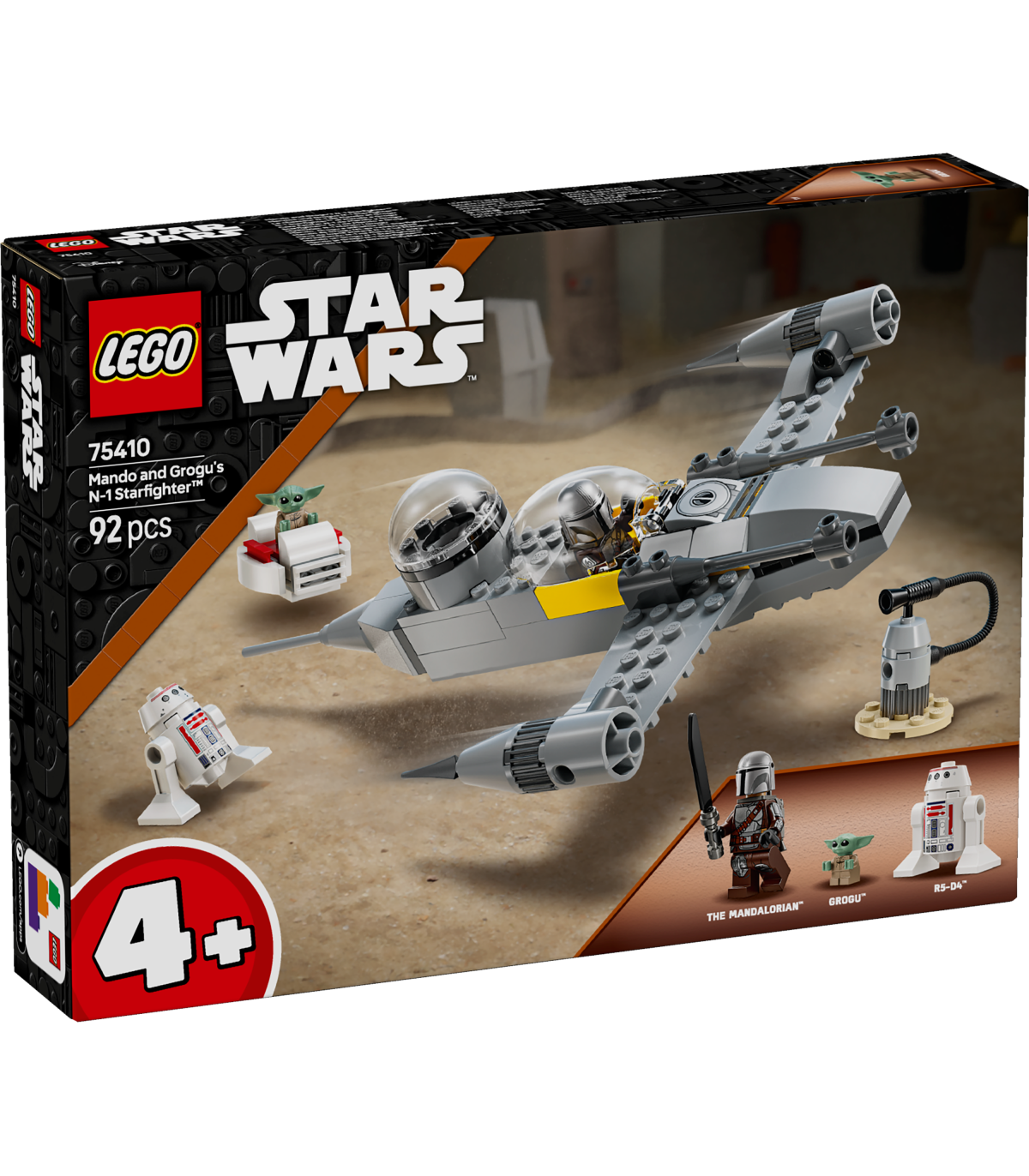 • Mando ja Grogu N-1 Starfighteri ehitusmänguasi – üle 4-aastased lapsed õpivad selle lõbusa stardikomplektiga ehitama LEGO® klotsidega ja looma ise fantaasialugusid sarja Star Wars: The Mandalorian™ kangelastega