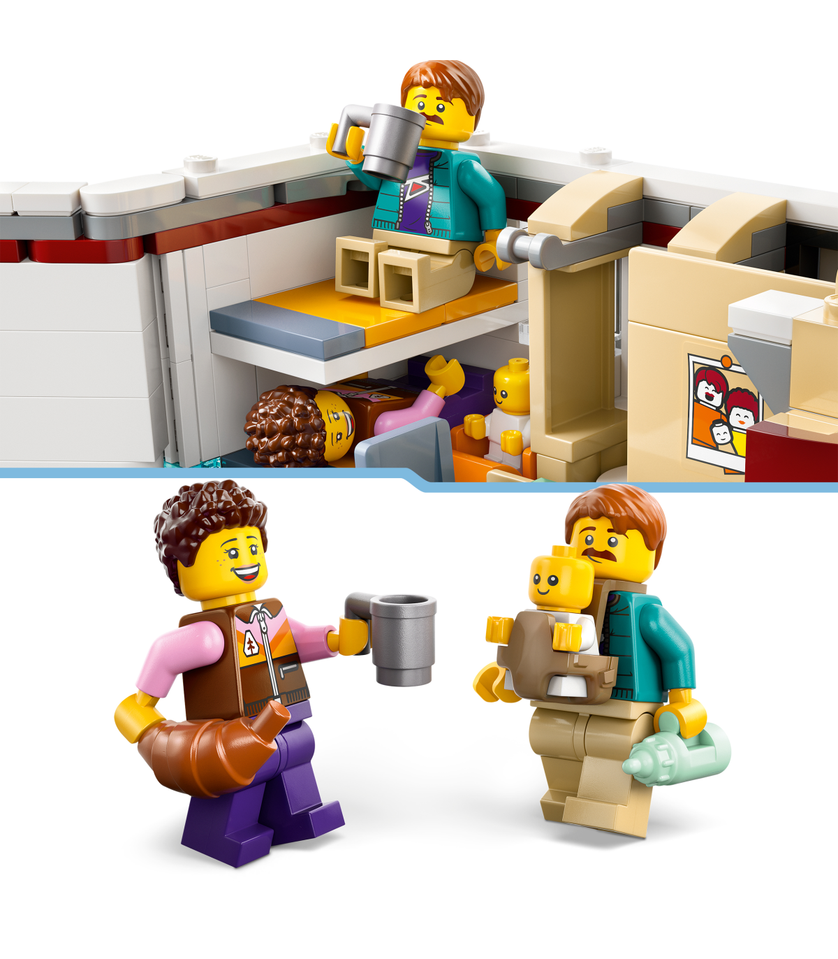• Lõbusad tarvikud – selle matkamänguasjaga on kaasas LEGO® minifiguuride tarvikud, sealhulgas kitarr, lutipudel, kaks kruusi ja sarvesai