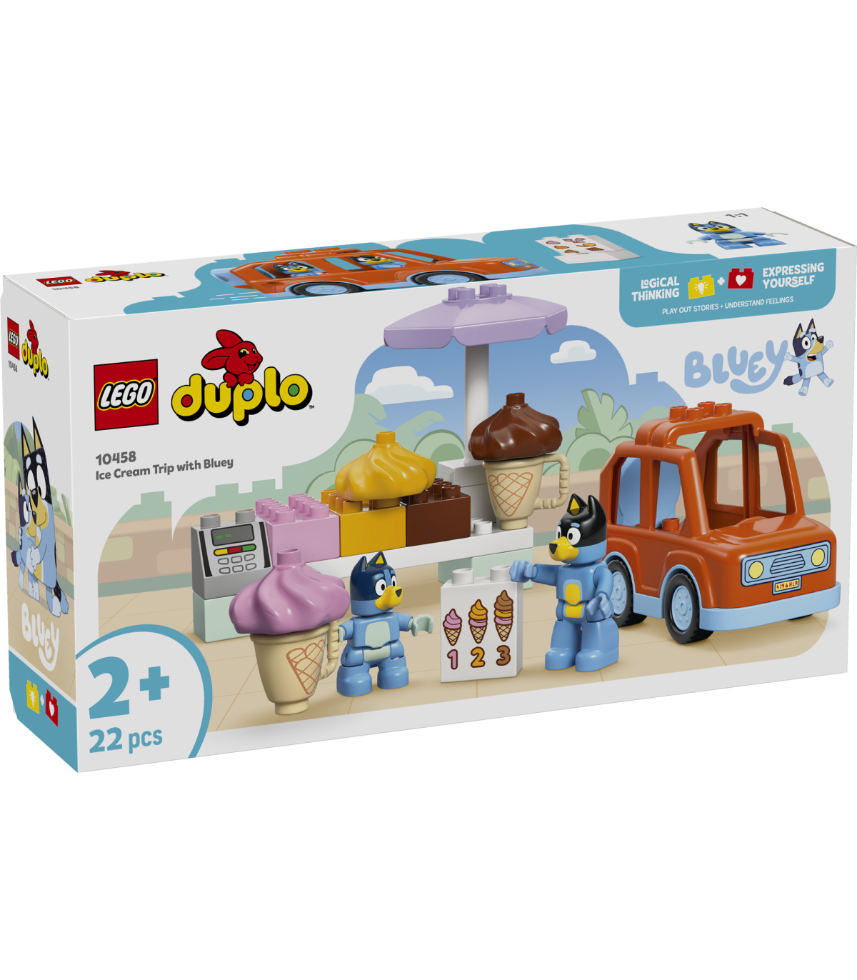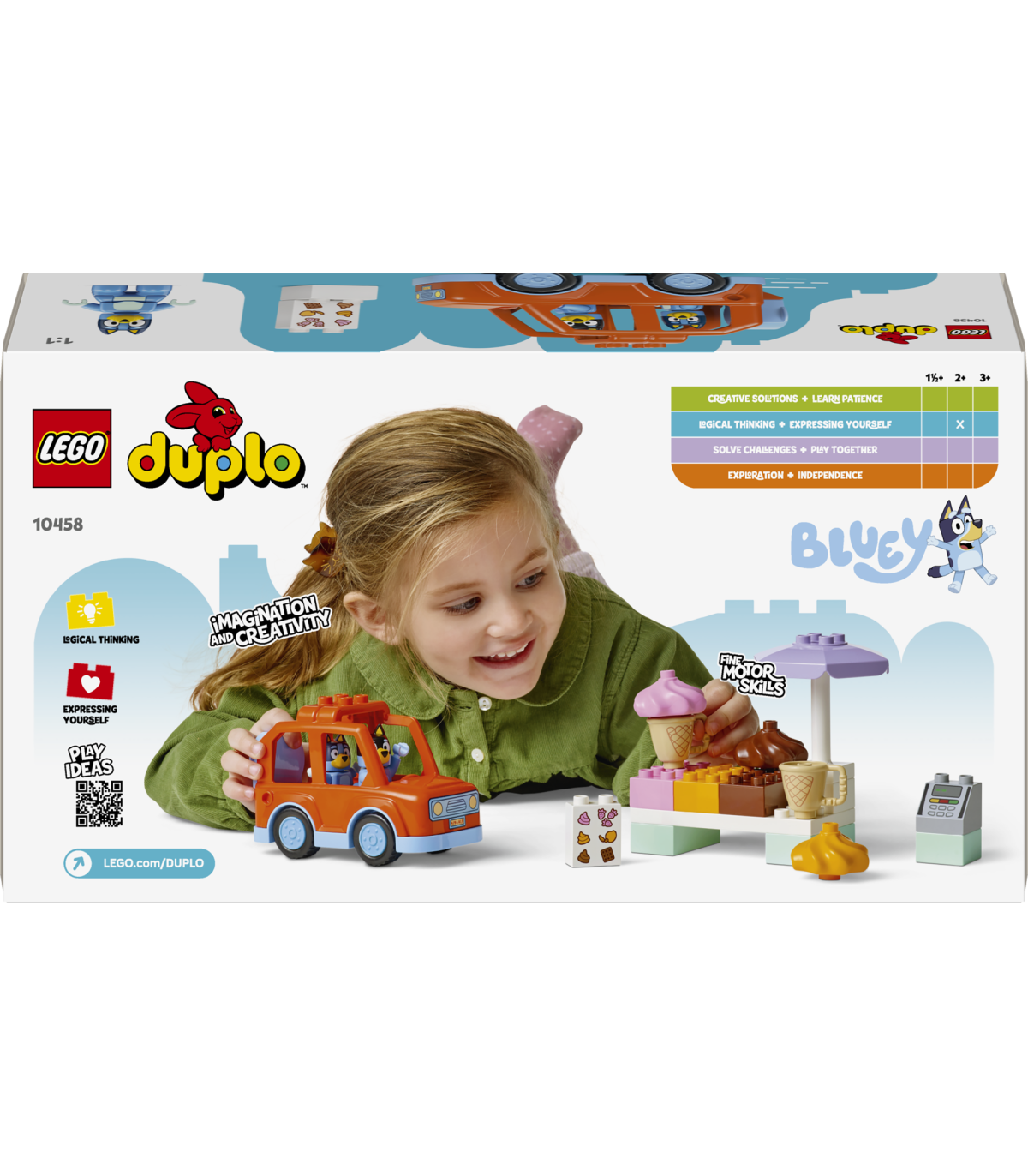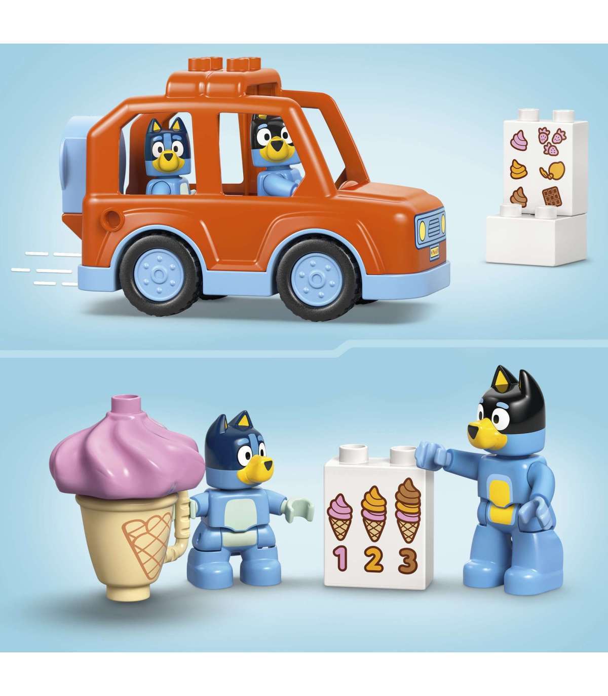 • Jäätiseleti ja sõiduki mängukomplekt, mis on inspireeritud Bluey telesaatest – vii koolieelikud Heelerite pere lõbusasse maailma LEGO® DUPLO® komplektiga Jäätisereis koos Blueyga