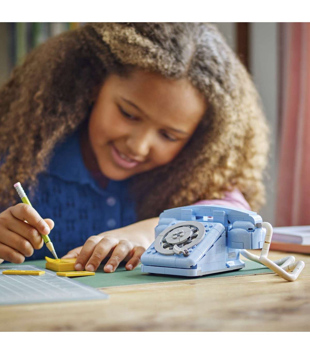 • Mõõtmed – 383-osalisse LEGO® kokkupandavasse mängukomplekti kuuluv retrotelefon on 7 cm kõrge, 15 cm lai ja 11 cm sügav