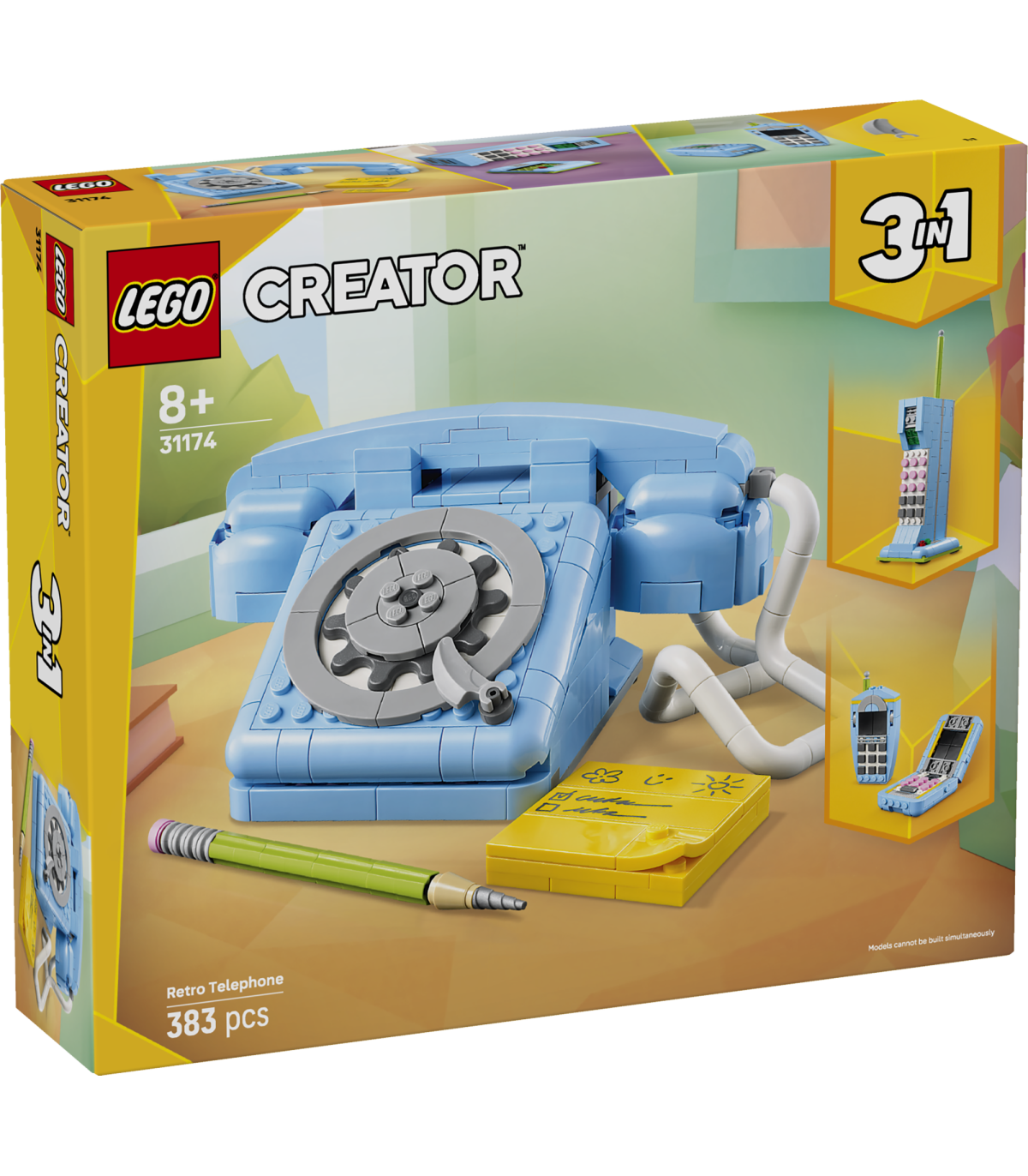 • Kolm retrotelefoni komplekti ehitusvõimalust ühes karbis – LEGO® Creator kolm-ühes Retrotelefon võimaldab alates 8-aastastel lastel ehitada ja ümber ehitada kolm retromudelit samade klotsidega