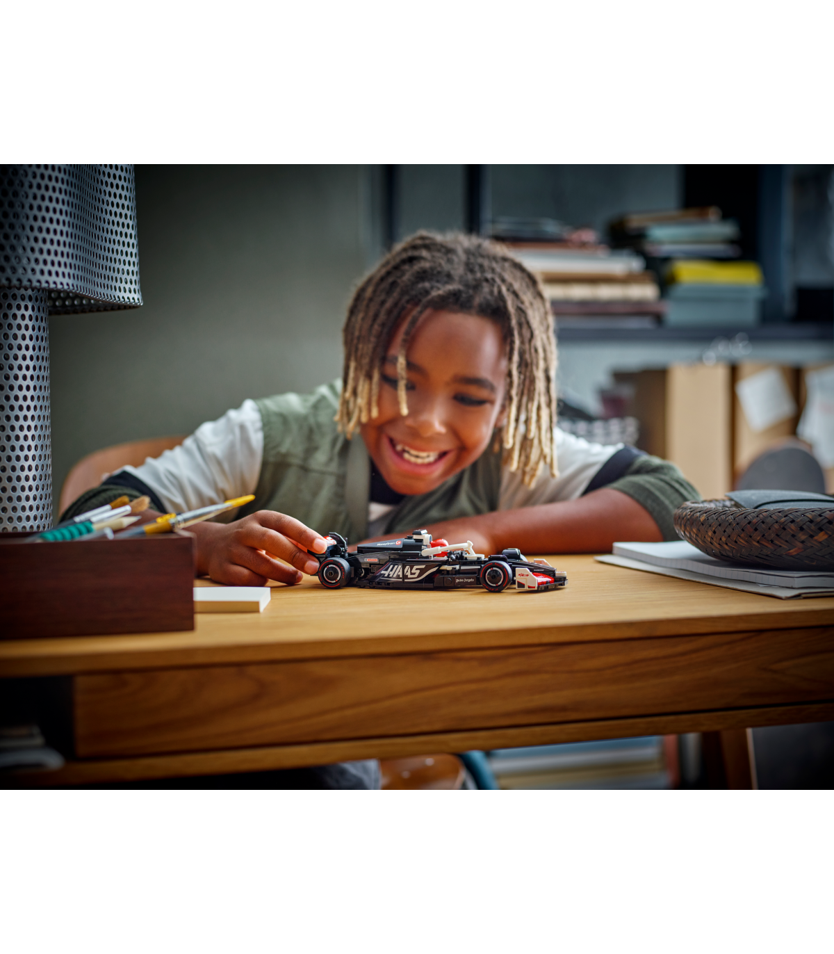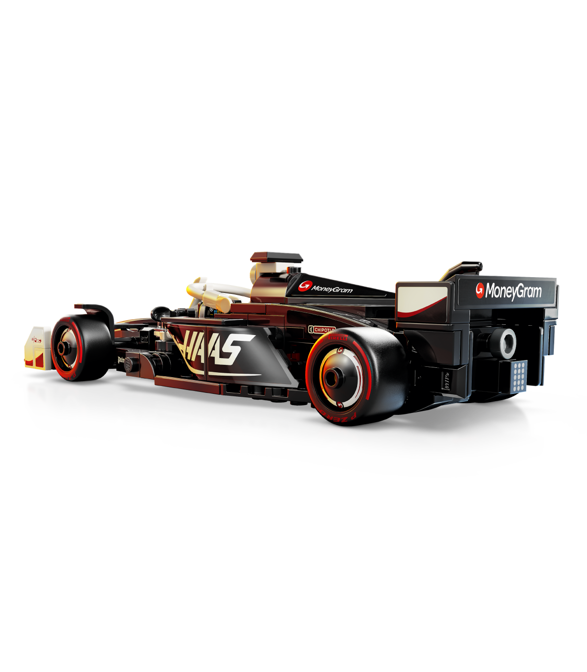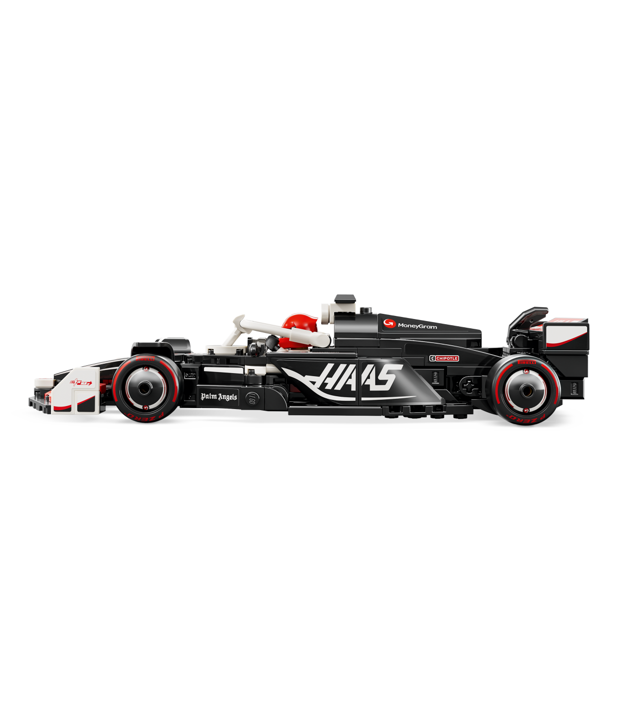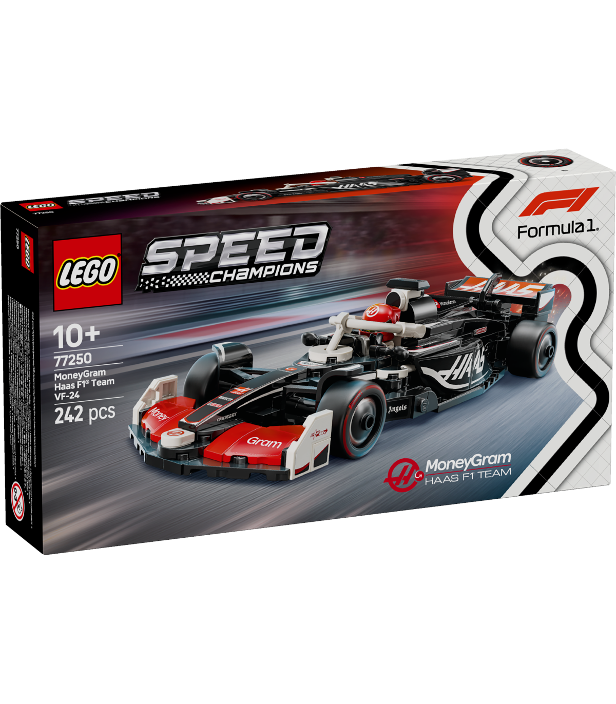 • 1 minifiguur – sõidukikomplektis on juhi minifiguur, kes kannab MoneyGram Haas F1 Teami riietust ja kiivrit, et lapsed saaksid selle kokpitti paigutada ja rollimängu etendada