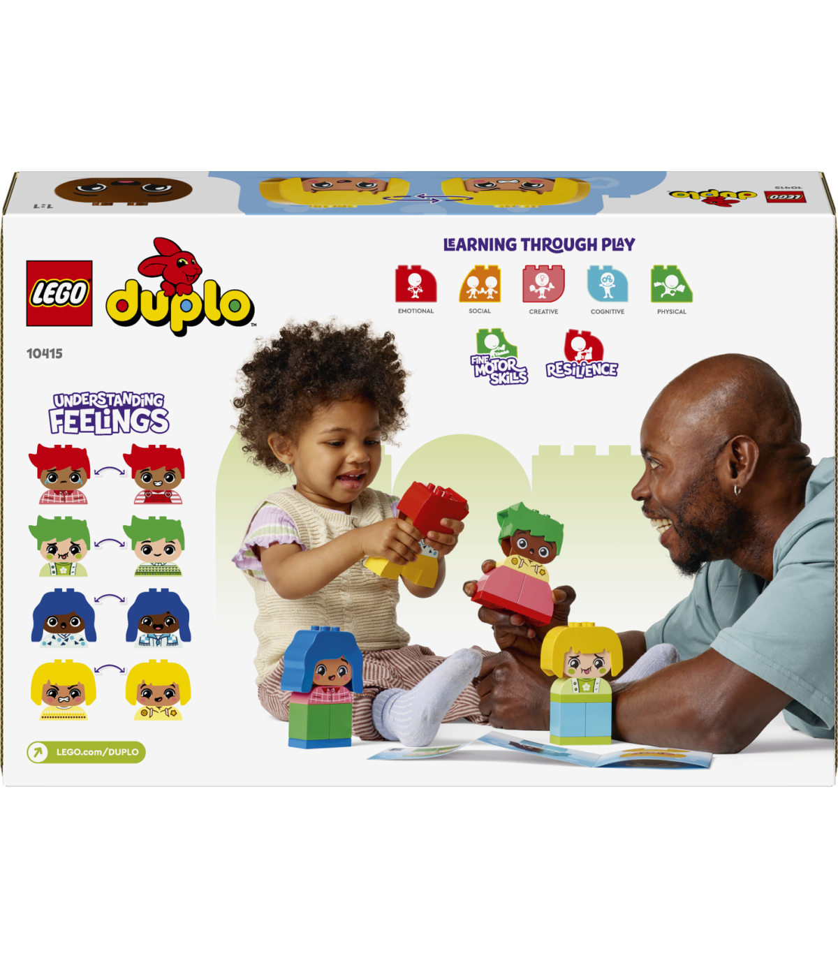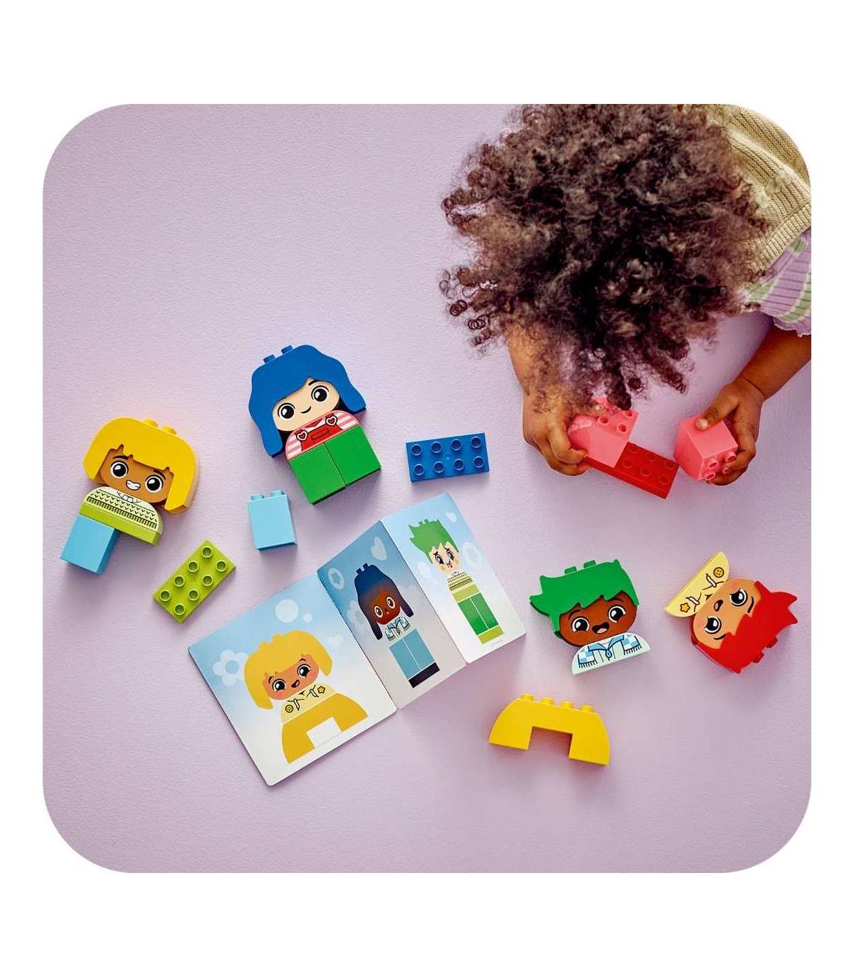 • Loovad õppemänguasjad – värvilisi mänguklotse virna ladudes sobitavad väikelapsed tegelaskujudele parukaid, seejärel valivad näoklotsidega, kuidas LEGO® DUPLO® inimesed end tunnevad