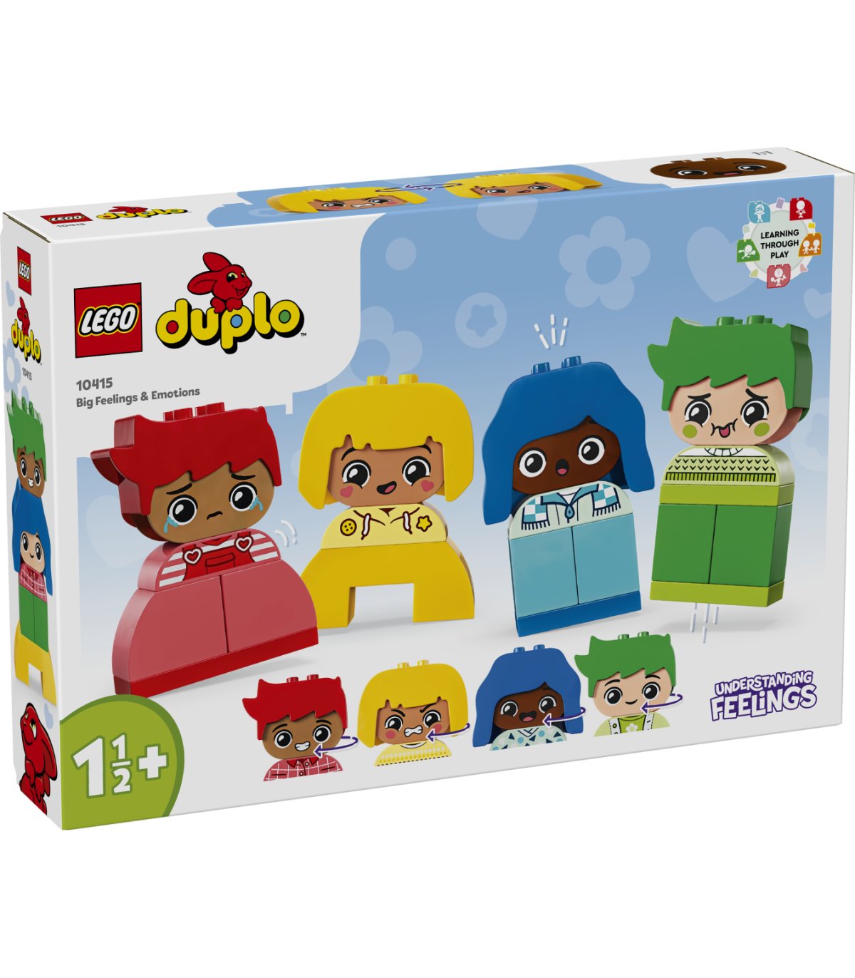 • Emotsioonide õppemänguasi väikelastele – komplektis LEGO® DUPLO® Minu esimesed suured tunded ja emotsioonid on neli väljendusrikast tegelaskuju, mis aitavad 18-kuustel ja vanematel lastel mõista erinevaid meeleolusid