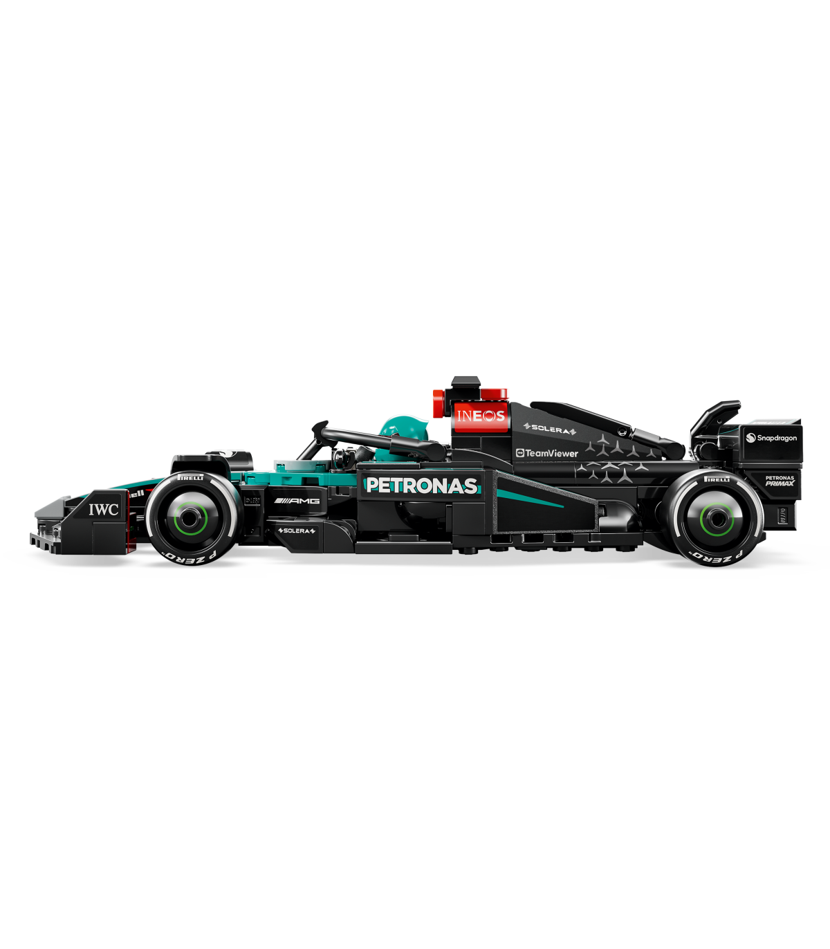 • Autentsed Mercedes-AMG PETRONAS F1® meeskonna detailid – F1 võistlusautol on kujundusdetailid tõelisest 2024. aasta versioonist, sealhulgas sponsorkleebised ja laiemad tagarehvid, millele on trükitud „Pirelli“