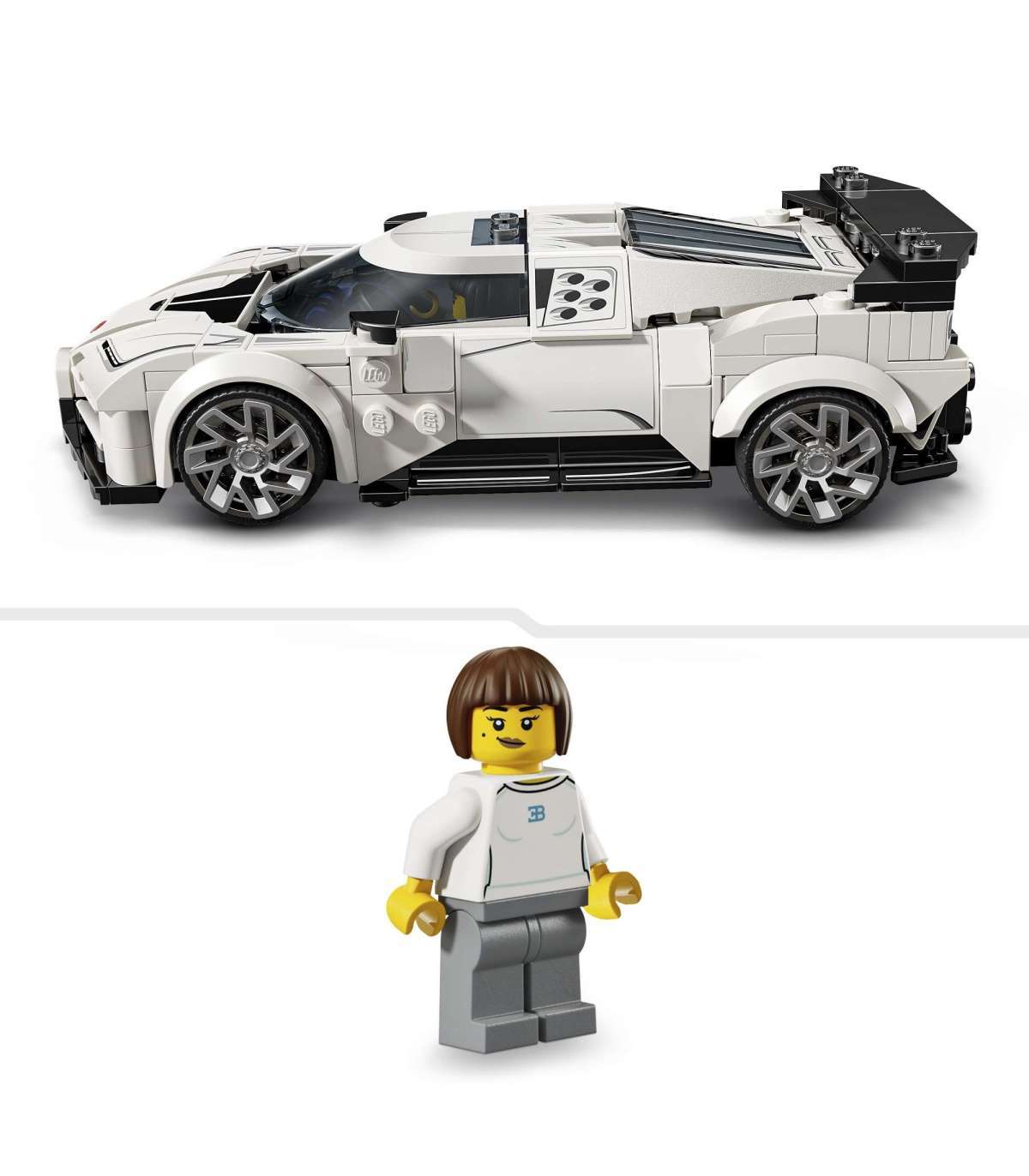 • 1 minifiguur – auto mängukomplektis on juhi minifiguur, kes kannab Bugatti riietust, kelle lapsed saavad rooli taha panna, et võidusõidutegevust etendada