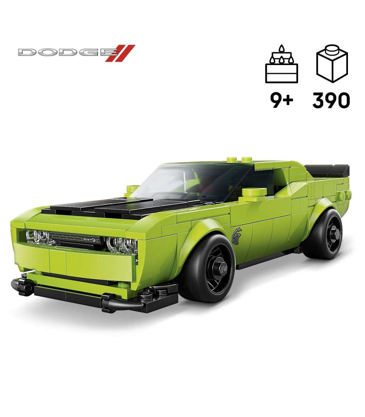 • Mõõdud – 390-osaline automudelikomplekt, mis sisaldab Dodge Challenger SRT Hellcati sportauto mänguasja, mis on 4 cm kõrge, 17 cm pikk ja 7 cm lai