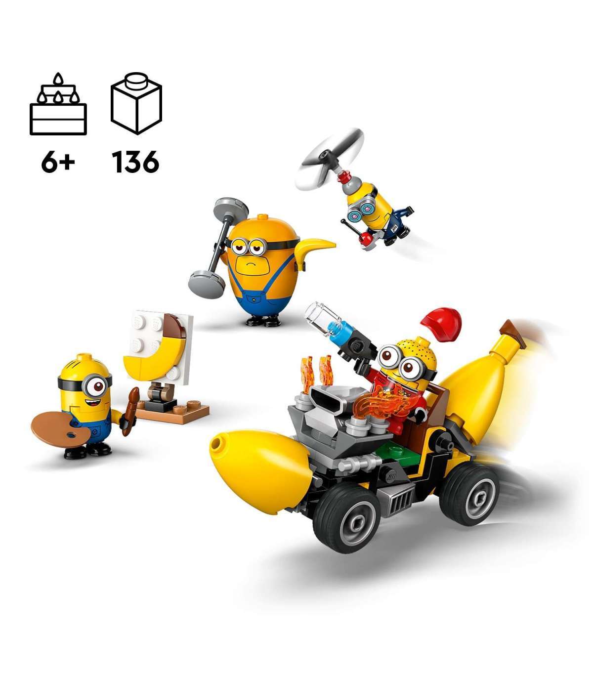 • Käsilaste mänguasi lastele – premeeri poisse ja tüdrukuid, kes on Illuminationi Despicable Me 4 filmi fännid selle alates 6-aastastele lastele mõeldud lõbusa mänguasjaga Käsilased ja banaaniauto