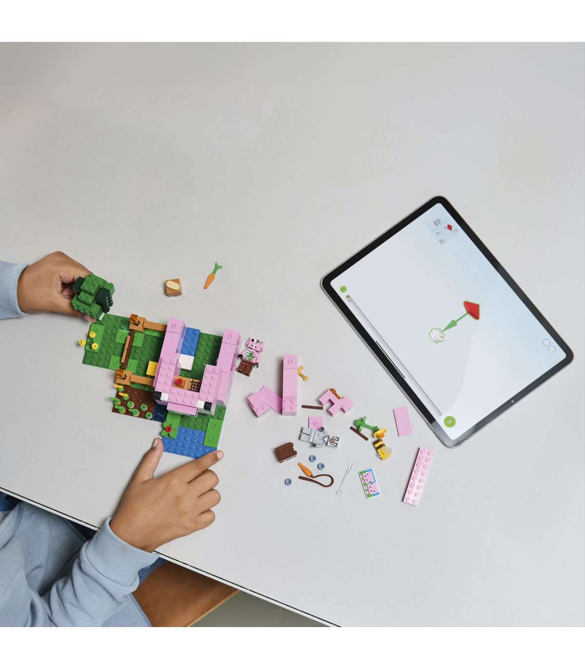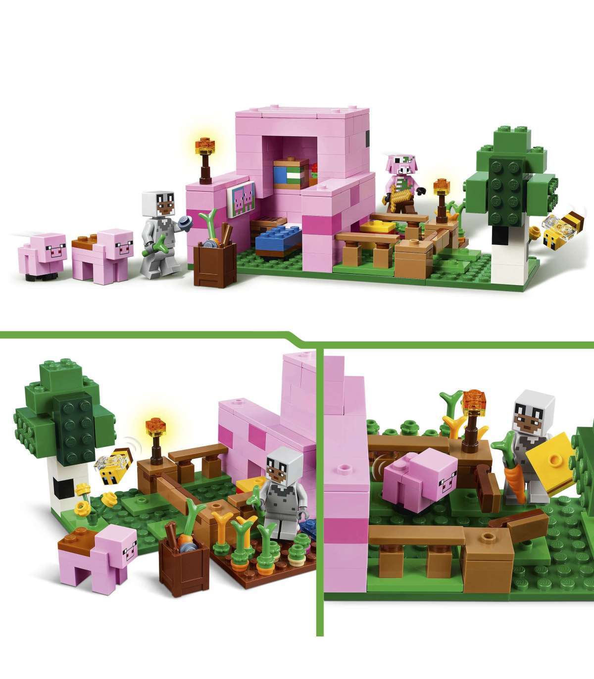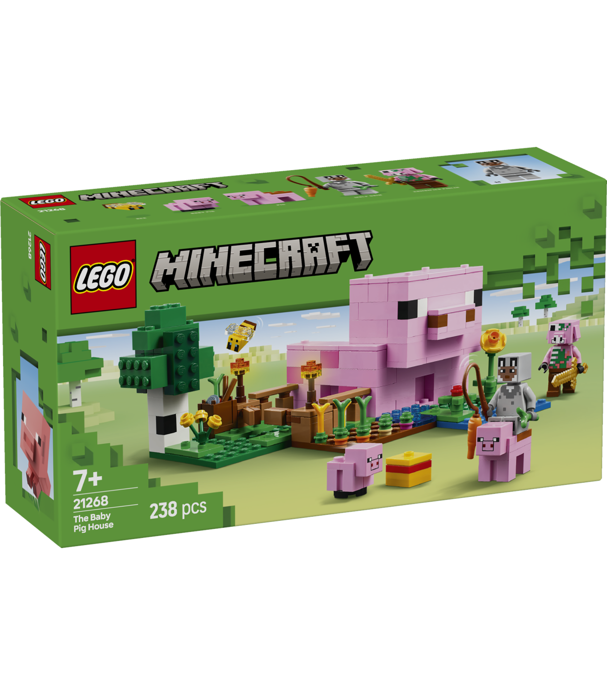 • LEGO® Minecraft® põrsabeebi maja – lapsed ehitavad seakujulise maja, kus on peenar, kus kasvavad kartulid ja peet, põld väravaga, kust saab sea läbi juhtida ja palju muud