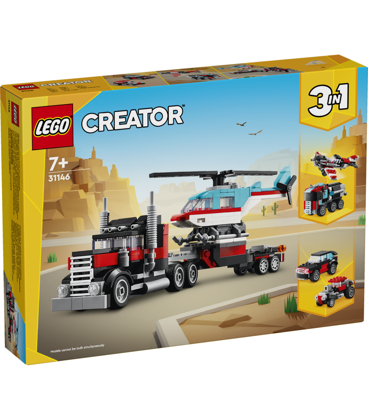 • 3 sõidukikomplekti ühes karbis – 7-aastased ja vanemad poisid ja tüdrukud saavad selle LEGO® Creator treilerauto koos helikopteriga ümber ehitada kolmeks komplektiks, kasutades samu klotse