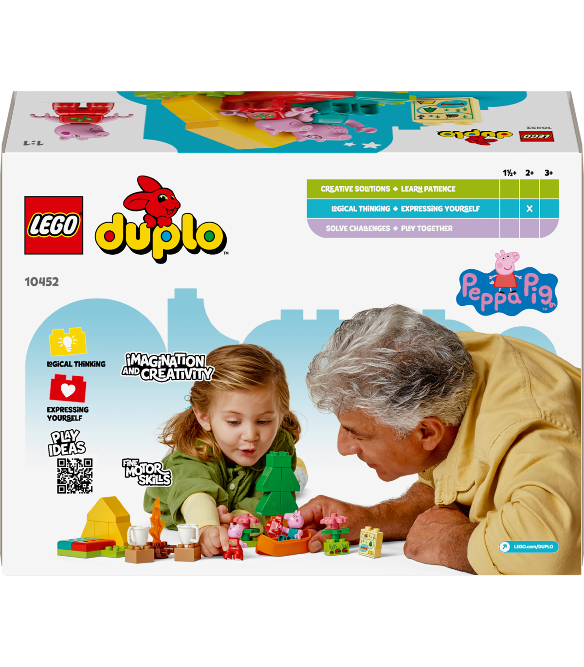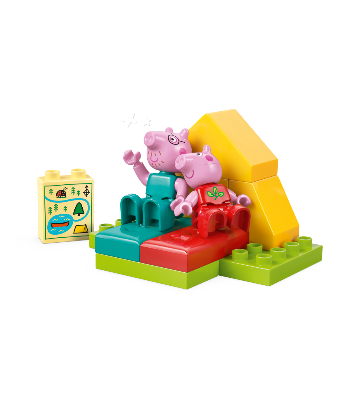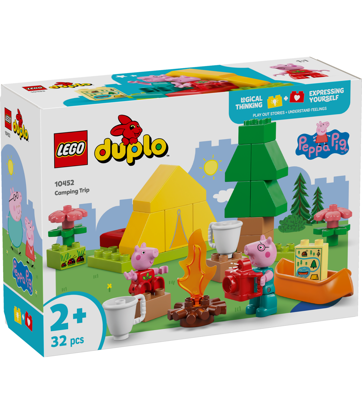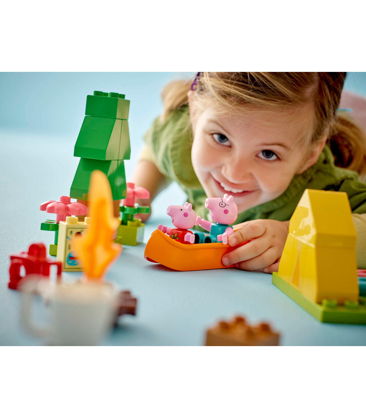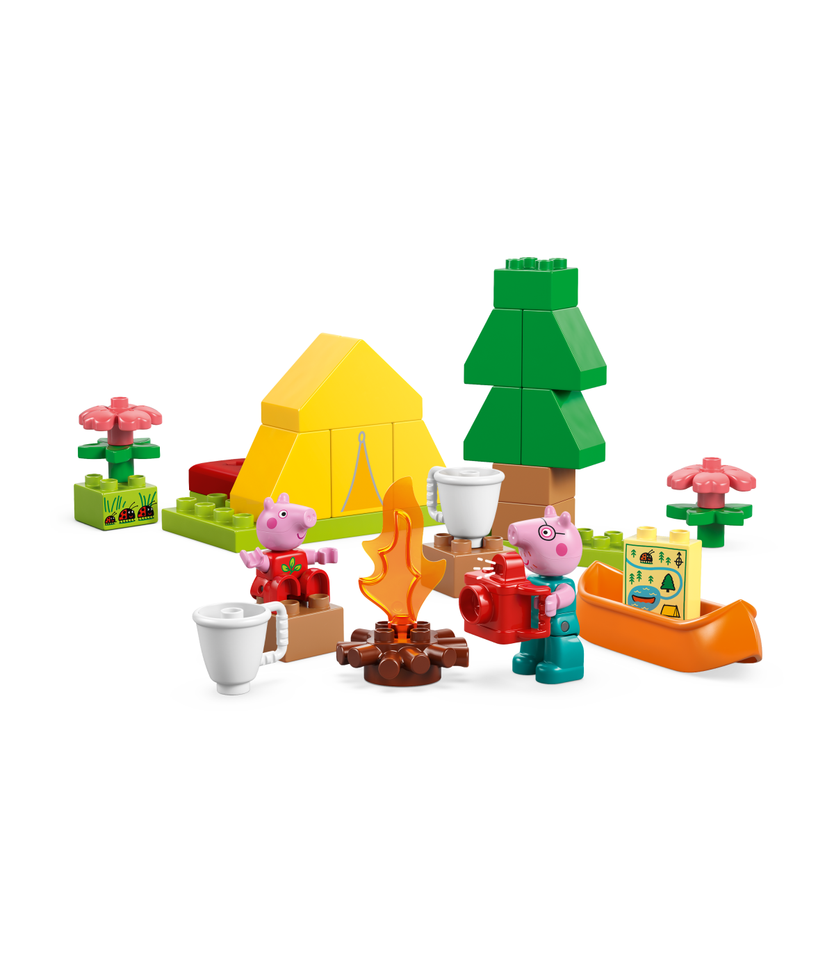 • Lõbus LEGO® DUPLO® seiklus väikelastele – koolieelikud aitavad Peppal ja Notsuissil laagri üles seada ja telgi püsti panna ning seejärel leiutavad loomingulisi lugusid kanuumänguasjaga