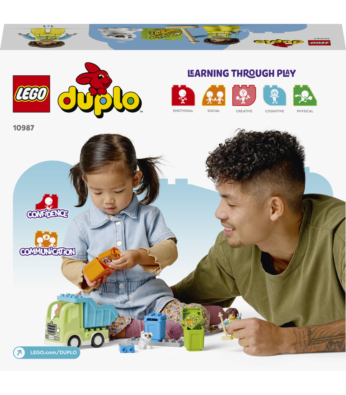 • Hariduslik mänguasi keskkonnasõbralikuks õppimiseks – LEGO® DUPLO® Town Prügisorteerimisauto (10987) mänguasi õpetab väikelastele prügi sorteerimist, jäljendades samal ajal lõbusalt neid ümbritsevat maailma